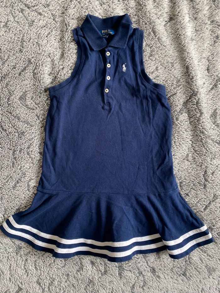 Robe sans manches style polo, bleue marine et blanche, marque Ralph Lauren, en parfait état (portée une fois) - taille 5 ans #cath_moi5ansfille D'autres modèles et marques disponibles pour garçon du prématuré au 12 ans et pour fille du naissance au 6 ans