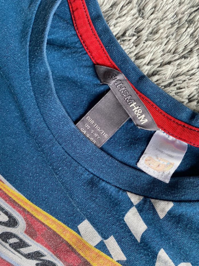 Tee-shirt manches courtes, de la marque H&M, couleur bleu avec motif Cars, pas mal porté mais reste en bon état d’où le prix de vente - taille 5 / 6 ans (taille grand) #cath_moi5ansgarçon #cath_moi6ansgarçon D'autres modèles et marques disponibles pour garçon du prématuré au 10 ans et pour fille du naissance au 6 ans dont Timberland, Bout'chou, Zara, Jacadi, Tape à l'œil, Okaidi, DKNY, Monoprix…