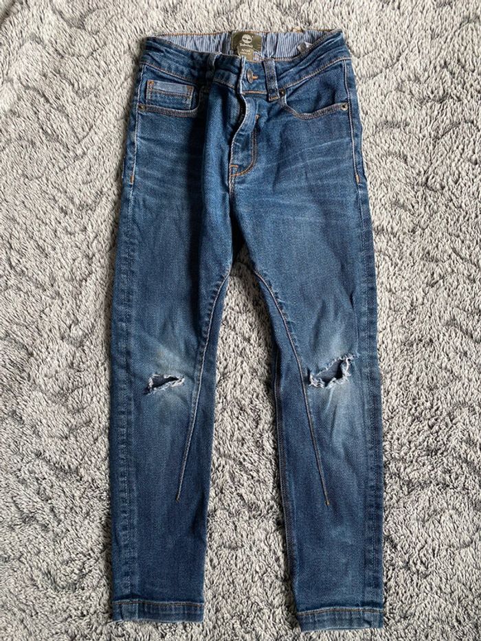 Jeans bleu coupe chino fit, de la marque Timberland, ajustable a la taille, pas mal porté mais reste en bon état (genoux abîmés voir dernière photo d’où le prix de vente) - taille 8 ans #cath_moi8ansgarçon D'autres modèles et marques disponibles pour garçon du prématuré au 10 ans et pour fille du naissance au 6 ans dont Timberland, Bout'chou, Zara, Jacadi, Tape à l'œil, Okaidi, DKNY, Monoprix…