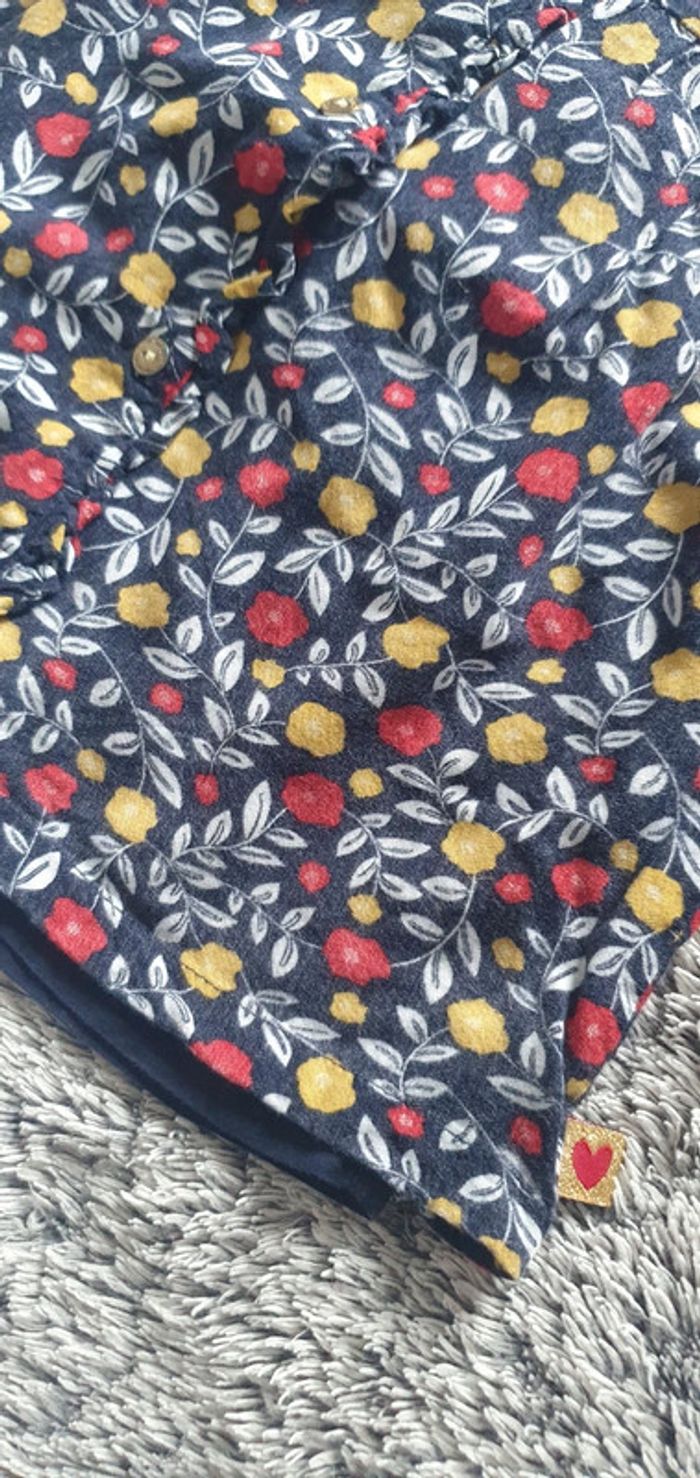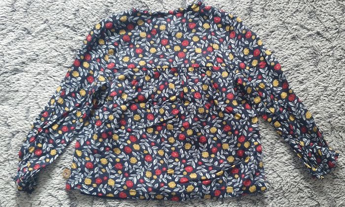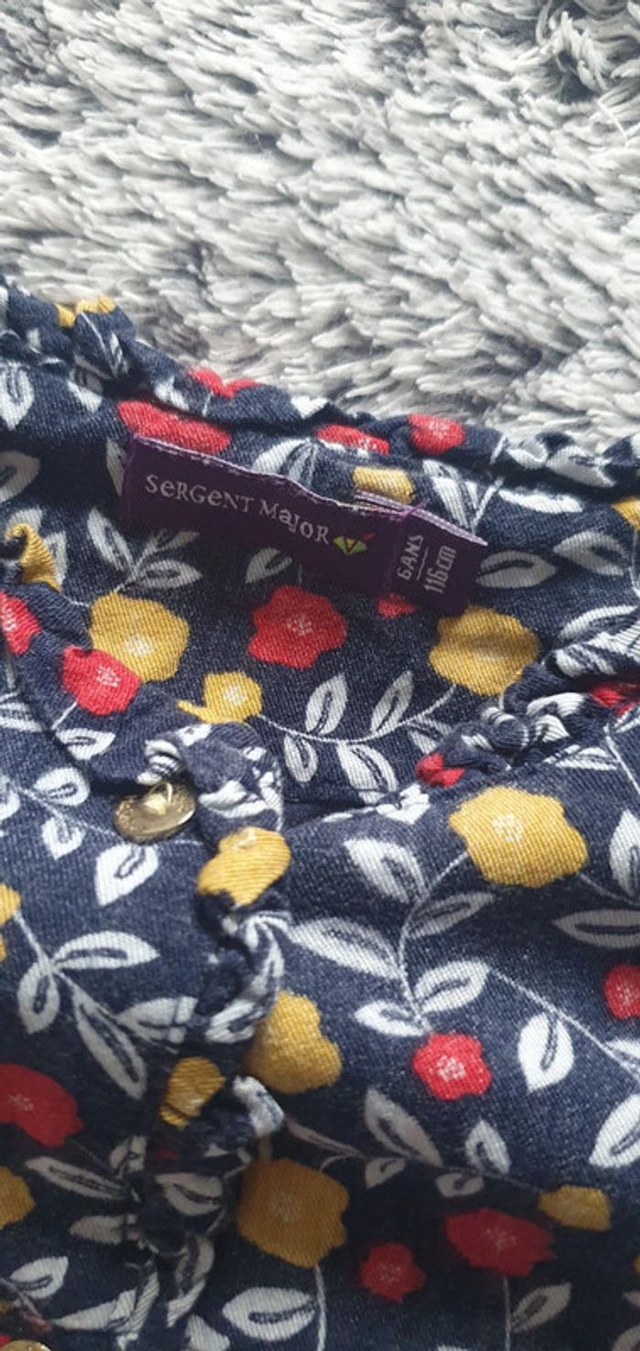 Chemisier manches longues, couleur bleu marine avec motifs fleurs jaune et rouge, marque Sergent Major, en bon état - taille 6 ans #cath_moi6ansfille D'autres modèles et marques disponibles pour garçon du prématuré au 12 ans et pour fille du naissance au 8 ans