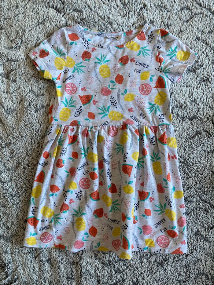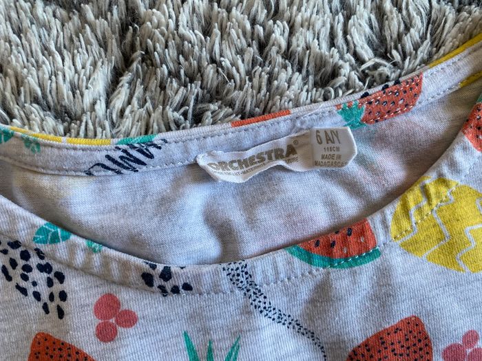 Robe motifs fruits (citrons 🍋, ananas 🍍 , fraises 🍓, pastèque 🍉 …) , couleur gris et motifs multicolores , marque Orchestra, en très bon état - taille 6 ans #cath_moi6ansfille D'autres modèles et marques disponibles pour garçon du prématuré au 12 ans et pour fille du naissance au 6 ans