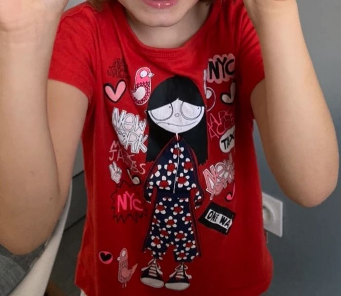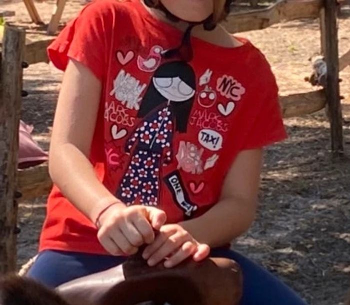Tee-shirt manches courtes rouge avec motifs sur le devant , de la marque Little Marc Jacobs , en bon état - taille 5 ans #cath_moi5ansfille D'autres modèles et marques disponibles pour garçon du prématuré au 10 ans et pour fille du naissance au 6 ans dont Timberland, Bout'chou, Zara, Jacadi, Tape à l'œil, Okaidi, DKNY, Monoprix …