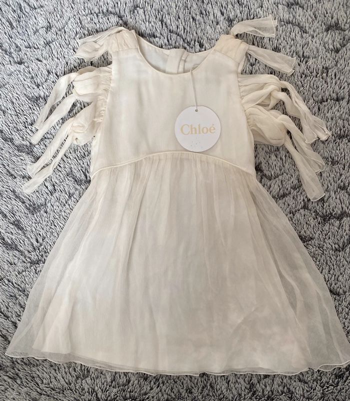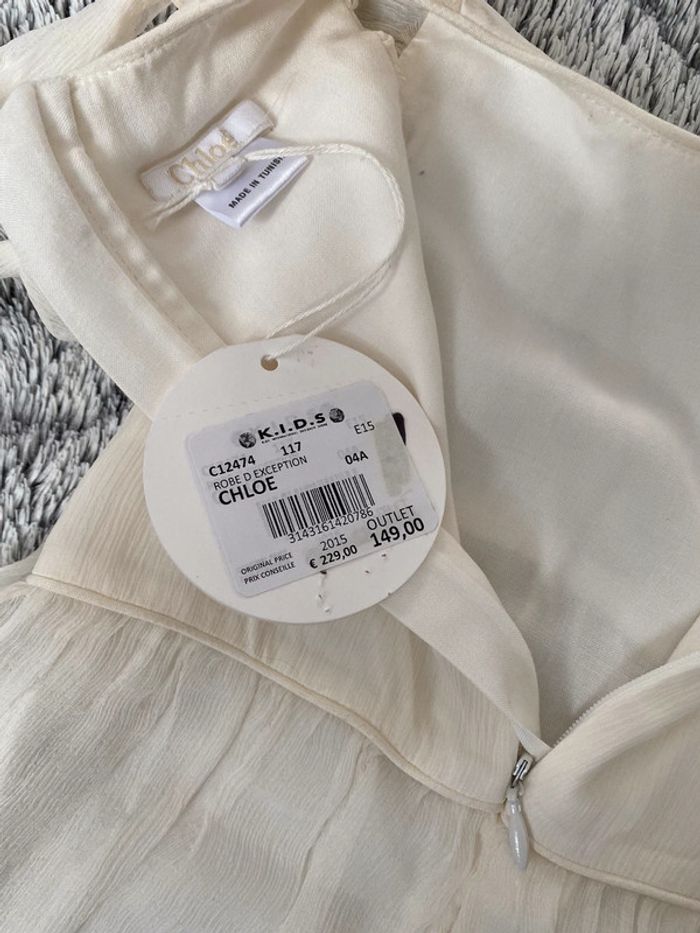 Magnifique robe matière 100% soie, de la marque Chloé, idéale cérémonie, couleur blanc cassé , NEUVE (jamais portée, avec étiquette) - taille 4 ans #cath_moi4ansfille D'autres modèles et marques disponibles pour garçon du prématuré au 10 ans et pour fille du naissance au 6 ans dont Timberland, Bout'chou, Zara, Jacadi, Tape à l'œil, Okaidi, DKNY, Monoprix... #mariage #bapteme #ceremonie #demoiselledhonneur