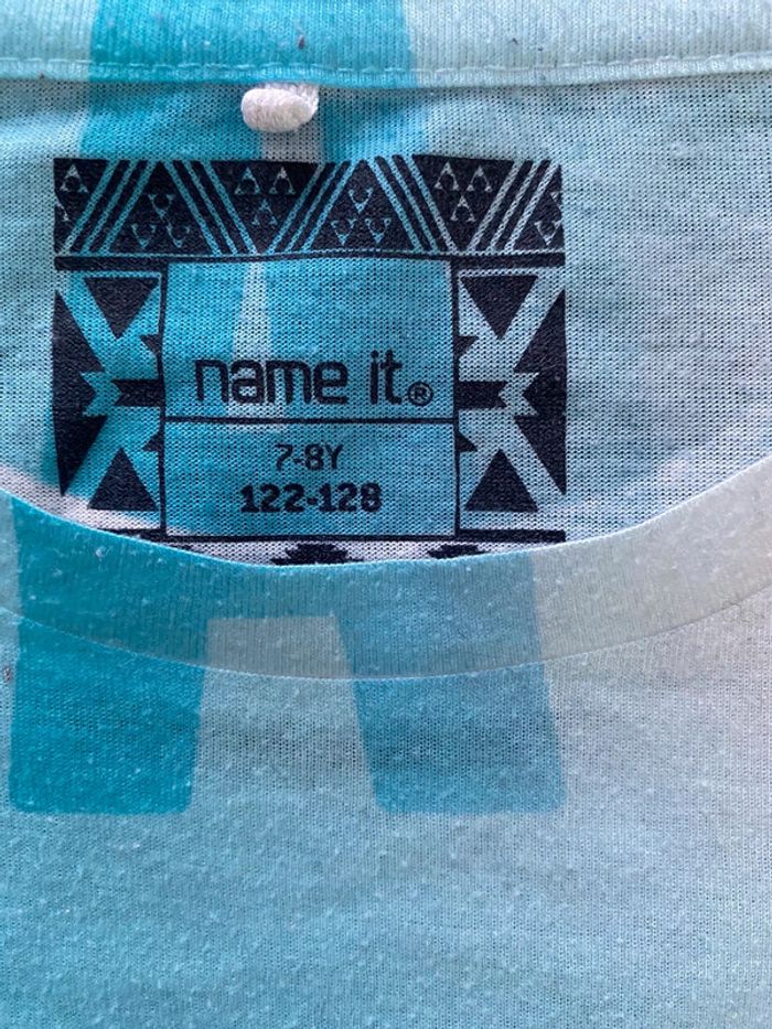 Tee-shirt manches courtes vert, de la marque Name It, en bon état (beaucoup porté d’où le prix de vente) , motifs 🌴palmiers - taille 7/8 ans mais taille grand