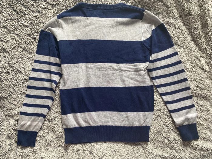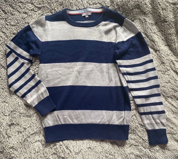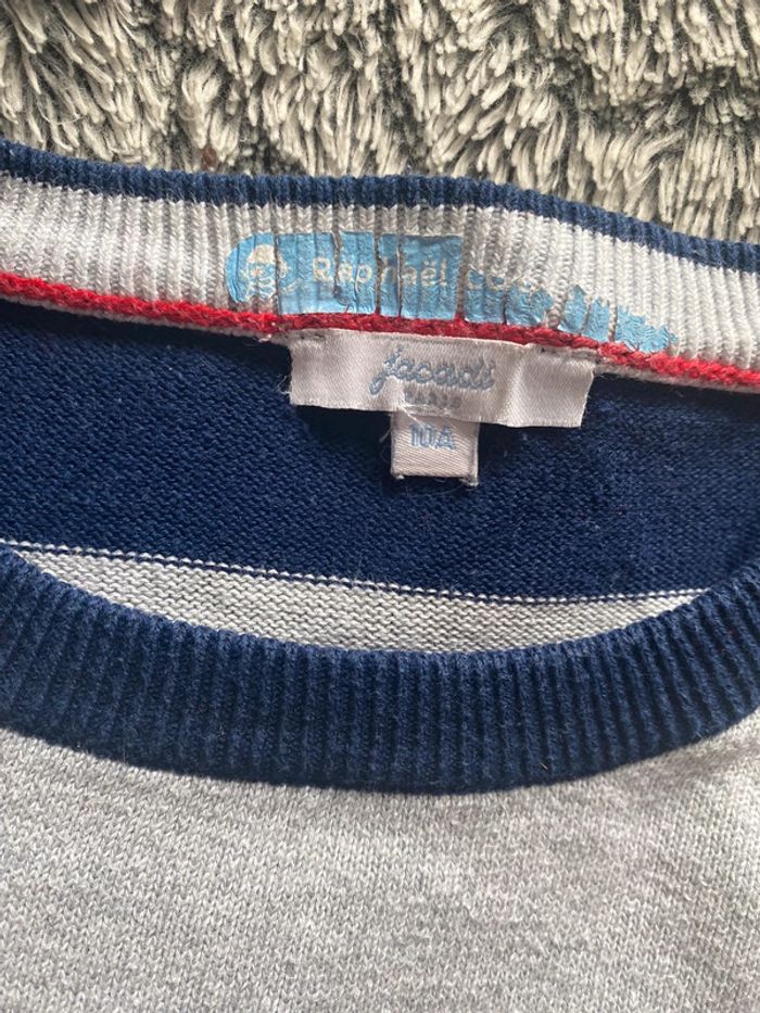 Magnifique pull rayé bleu marine et gris, 100% coton, la marque Jacadi, en bon état- taille 10 ans