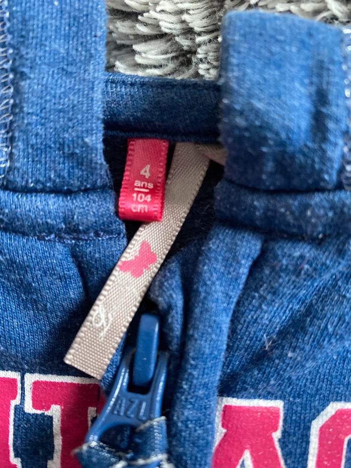 Veste de sport à capuche, de la marque orchestra, couleur bleu avec écriture ton rose sur le devant, en bon état (pas mal portée et petite tache sur le coude d’où le prix de vente) - taille 4 ans #cath_moi4ansfille D'autres chaussures et vêtements disponibles pour garçon du prématuré au 10 ans et pour fille du naissance au 6 ans dont Timberland, Bout'chou, Zara, Jacadi, Tape à l'œil, Okaidi, DKNY, Monoprix...