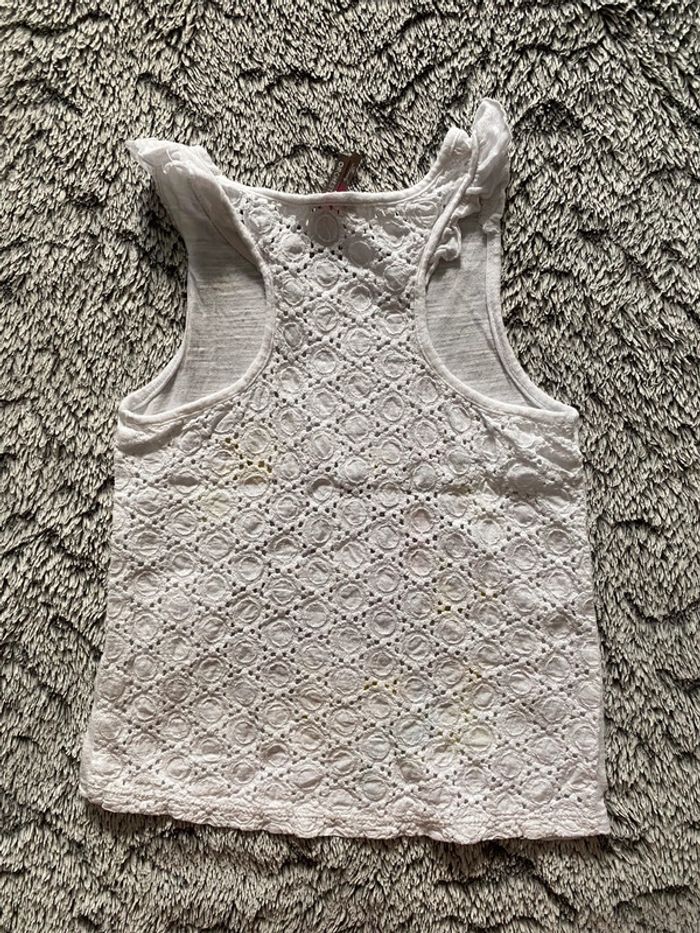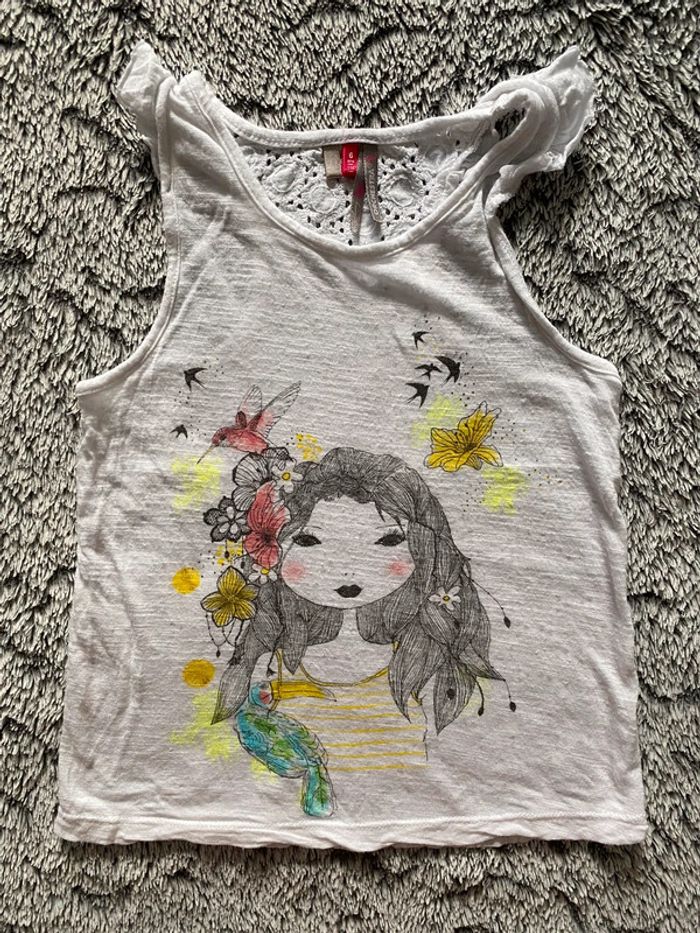 Débardeur blanc avec dentelle sur l’arrière et motif petite fille sur le devant, de la marque Orchestra, en bon état - taille 6 ans #cath_moi6ansfille D'autres modèles et marques disponibles pour garçon du prématuré au 10 ans et pour fille du naissance au 6 ans dont Timberland, Bout'chou, Zara, Jacadi, Tape à l'œil, Okaidi, DKNY, Monoprix...