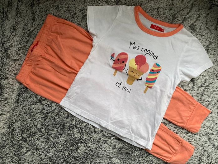 Pyjamas 2 pièces composé d’un teeshirt manches courtes et d’un pantalon, de la marque Tissaia, en très bon état (porté une fois) - taille 5 ans #cath_moi5ansfille D'autres modèles et marques disponibles pour garçon du prématuré au 10 ans et pour fille du naissance au 6 ans dont Timberland, Bout'chou, Zara, Jacadi, Tape à l'œil, Okaidi, DKNY, Monoprix....