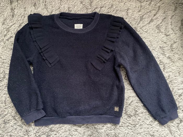 Pull bleu marine avec volants sur le devant, de la marque Carrément Beau , en très bon état - taille 6 ans #cath_moi6ansfille D'autres modèles et marques disponibles pour garçon du prématuré au 12 ans, et pour fille du naissance au 8 ans dont Timberland, Bout'chou, Zara, Jacadi, Tape à l'œil, Okaidi, DKNY, …