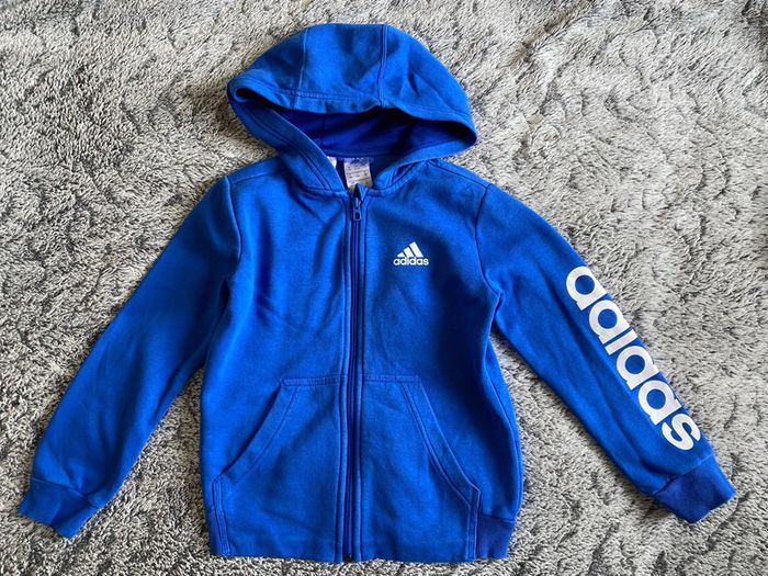 Veste à fermeture éclair, de la marque Adidas, en parfait état (portée 2 fois), couleur bleu roi - taille 7 / 8 ans #cath_moi7ansgarçon #cath_moi8ansgarçon D'autres modèles et marques disponibles pour garçon du prématuré au 10 ans et pour fille du naissance au 6 ans dont Timberland, Bout'chou, Zara, Jacadi, Tape à l'œil, Okaidi, DKNY, Monoprix…