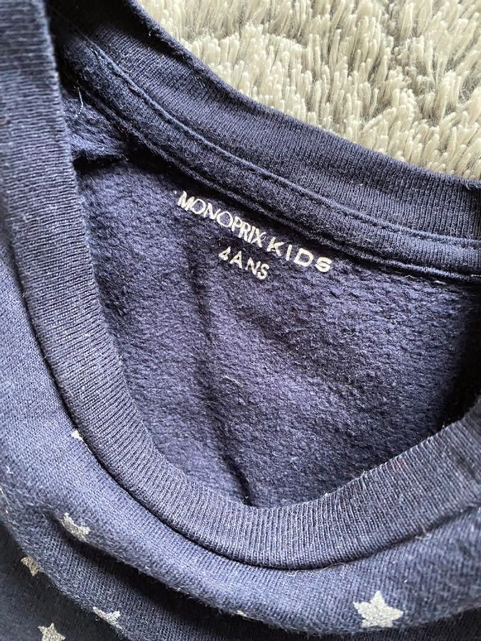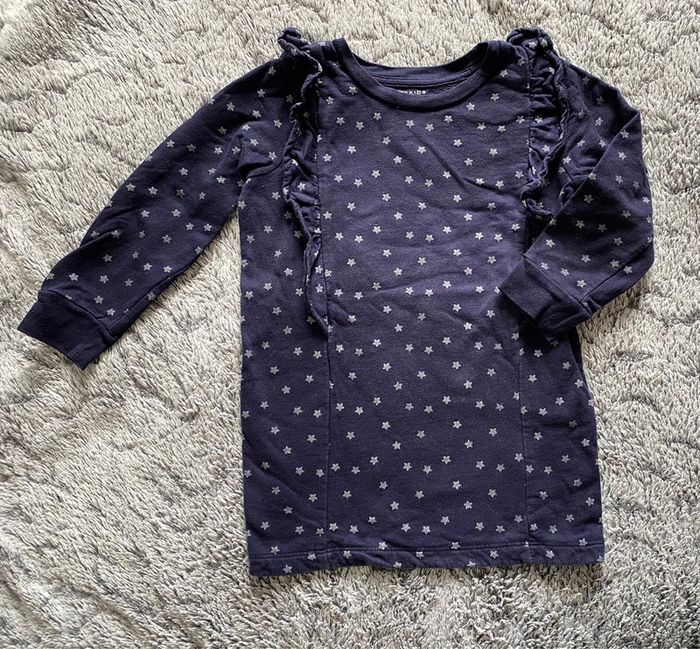 Magnifique robe pull bleu marine avec motifs étoiles argentées, volants sur le haut, en parfait état (très peu portée), marque Monoprix Kids, idéale mi saison - taille 4 ans (taille grand) #cath_moi4ansfille #cath_moi5ansfille D'autres modèles et marques disponibles pour garçon du prématuré au 10 ans et pour fille du naissance au 6 ans dont Timberland, Bout'chou, Zara, Jacadi, Tape à l'œil, Okaidi, DKNY, Monoprix...