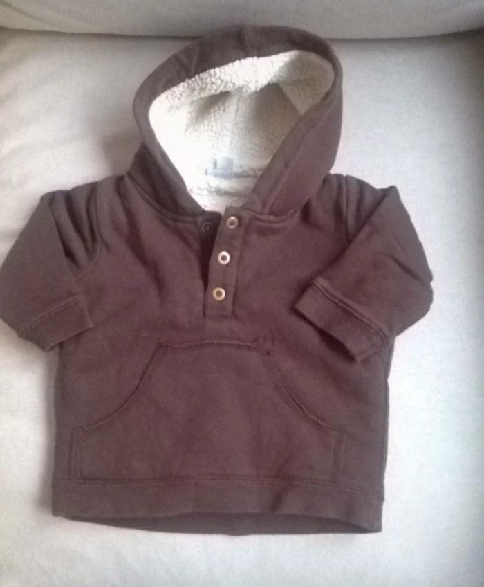 Pull à capuche Verbaudet marron doublé en polaire - 9 mois #cath_moi9moisgarçon D'autres modèles et marques disponibles pour garçon du prématuré au 10 ans, et pour fille du naissance au 5 ans dont Timberland, Bout'chou, Tape à l'œil, Okaidi, DKNY, ZARA, Monoprix....