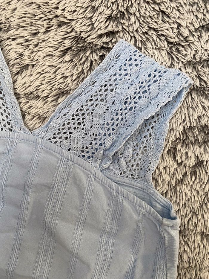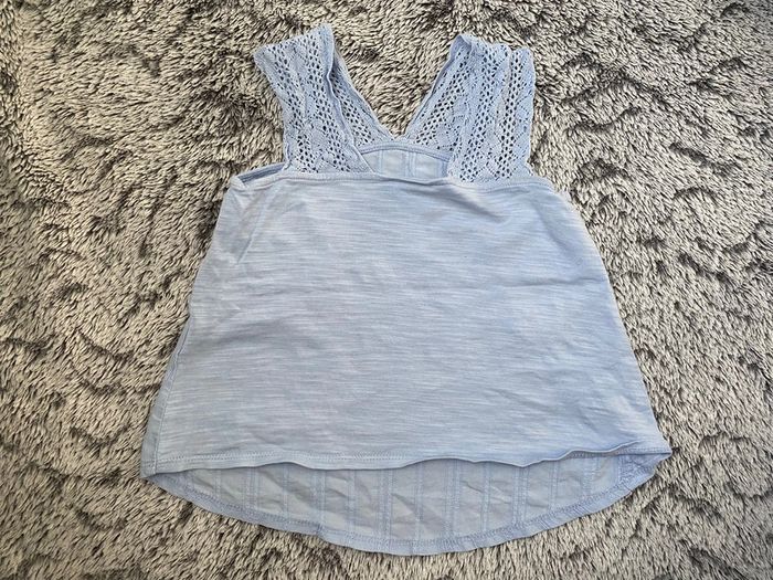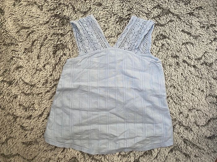 Tee-shirt bleu ciel style débardeur avec détails sur les manches style crochet, de la marque Zara, en bon état - taille 5 ans #cath_moi5ansfille D'autres modèles et marques disponibles pour garçon du prématuré au 10 ans et pour fille du naissance au 6 ans dont Timberland, Bout'chou, Zara, Jacadi, Tape à l'œil, Okaidi, DKNY, Monoprix...