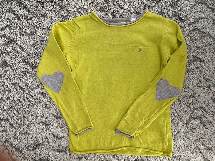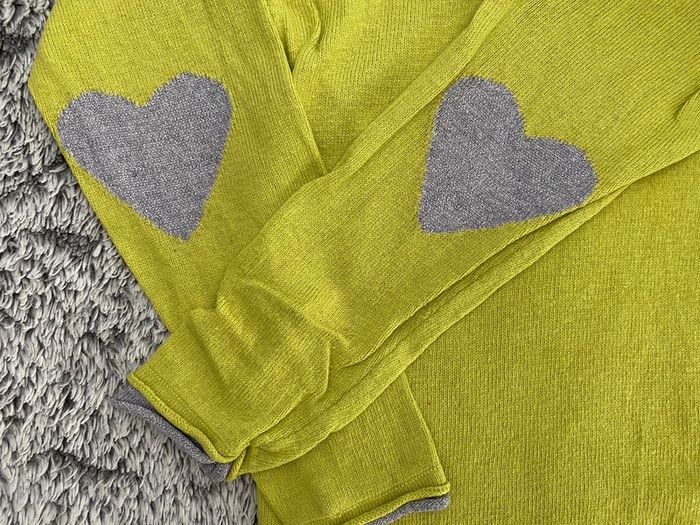 Pull en coton couleur vert pomme avec cœurs ♥️ argentés aux coudes , de la marque Orchestra, en très bon état - taille 6 ans #cath_moi6ansfille D'autres modèles et marques disponibles pour garçon du prématuré au 10 ans et pour fille du naissance au 6 ans dont Timberland, Bout'chou, Zara, Jacadi, Tape à l'œil, Okaidi, DKNY, Monoprix...