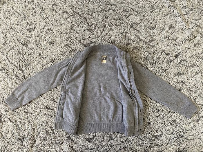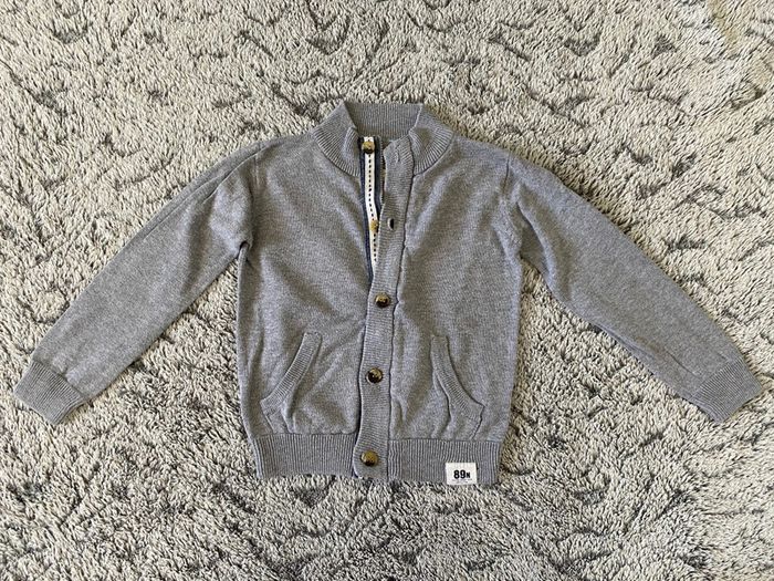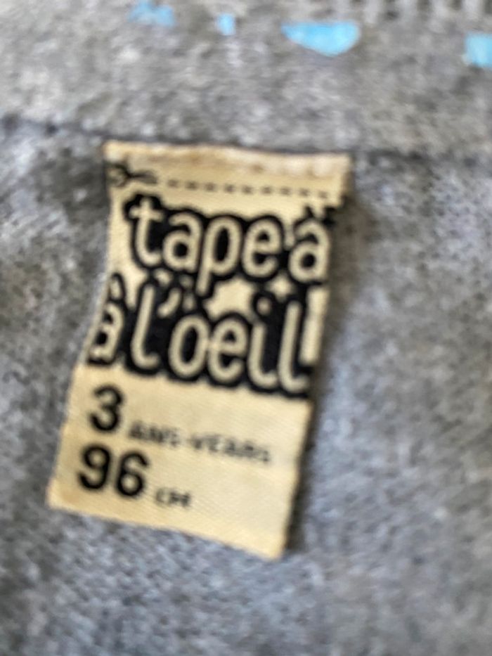 Petite veste gris clair avec boutons ou fermeture éclair (la fermeture éclair est dure à fermer) et détails sur les coudières, de la marque Tape à l’œil, en parfait état