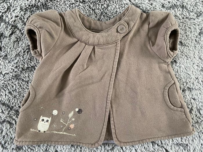 Petit gilet marron avec motif chouette 🦉 en bon état - 3 mois #cath_moi3moisfille D'autres modèles et marques disponibles pour garçon du prématuré au 8 ans et pour fille du naissance au 4 ans dont Timberland, Bout'chou, Zara, Jacadi, Tape à l'œil, Okaidi, DKNY, Monoprix....