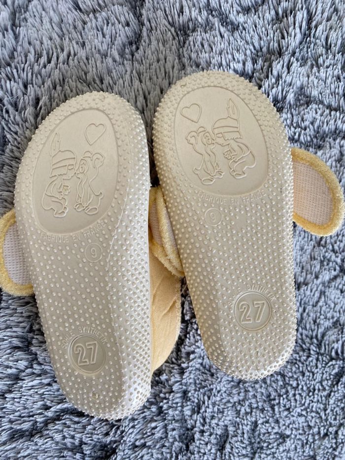 Chaussons neufs (jamais portés) motif tête de chien, couleur beige, semelle antidérapante, fabriqués en France 🇫🇷 - taille 31 #cath_moichaussuresfille #cath_moichaussuresgarçon #cath_moiaccessoiresenfant D'autres modèles et marques disponibles pour garçon du prématuré au 10 ans et pour fille du naissance au 5ans dont Timberland, Bout'chou, Zara, Jacadi, Tape à l'œil, Okaidi, DKNY, Monoprix....