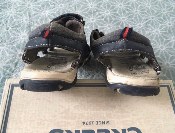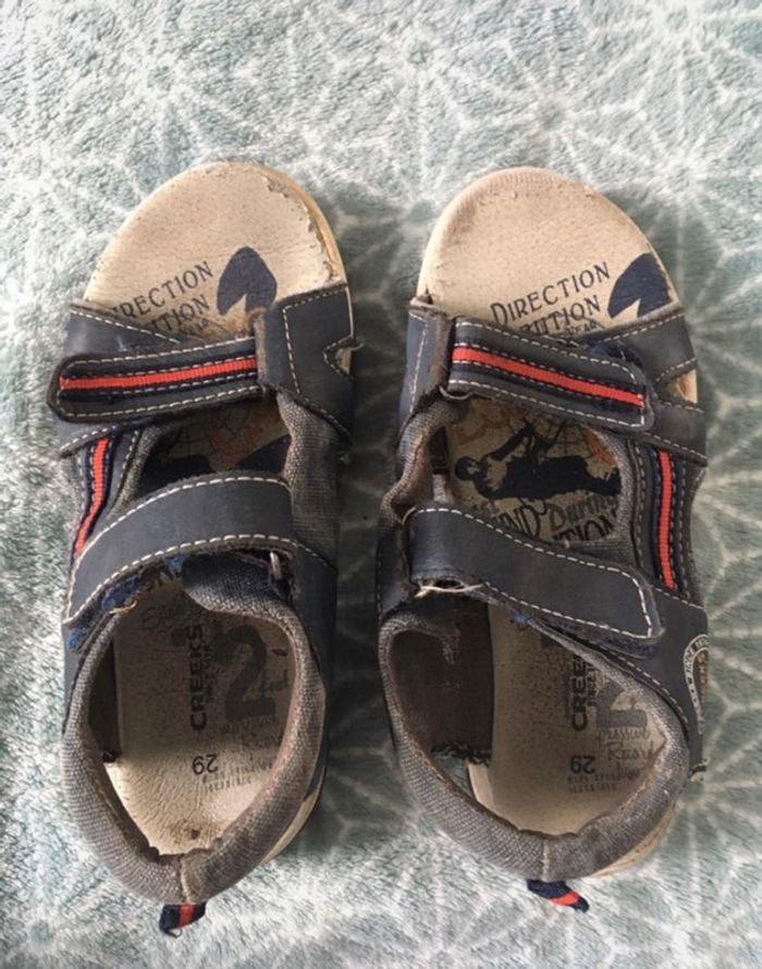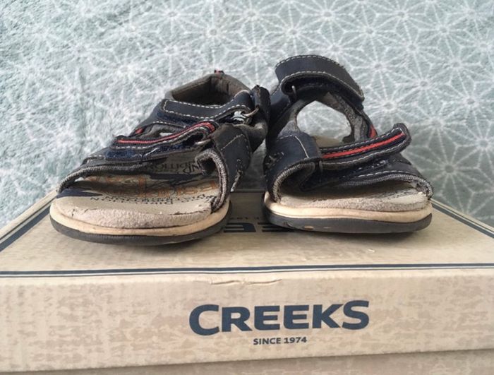 Chaussures ouvertes style claquettes fermées à l’arrière donc facile à enfiler et tiennes bien au pied, bien portées mais peuvent encore servir à un autre petit bout, de la marque CREEKS - taille 29 #cath_moichaussuresgarçon #cath_moi24moisgarçon #cath_moi36moisgarçon #cath_moi4ansgarçon #cath_moi5ansgarçon #cath_moi6ansgarçon D'autres chaussures et vêtements disponibles pour garçon du prématuré au 10 ans et pour fille du naissance au 5 ans dont Timberland, Bout'chou, Zara, Jacadi, Tape à l'œil, Okaidi, DKNY, Monoprix....