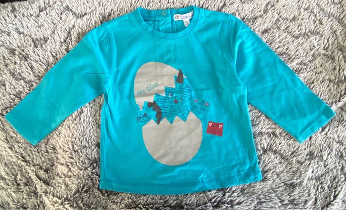 Tee-shirt manches longues bleu ciel avec motif petit dragon de la marque Kitchoun, en parfait état (porté une ou deux fois) - 12 mois #cath_moi12moisgarçon D'autres modèles et marques disponibles pour garçon du prématuré au 8 ans et pour fille du naissance au 36 mois dont Timberland, Bout'chou, Zara, Jacadi, Tape à l'œil, Okaidi, DKNY, Monoprix....