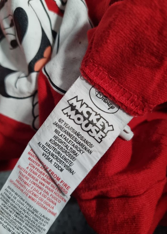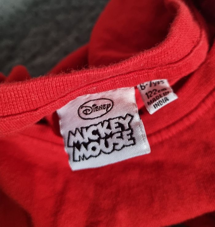 T-shirt rouge à manches longues imprimée Mickey Mouse, marque Disney taille 6-7ans.