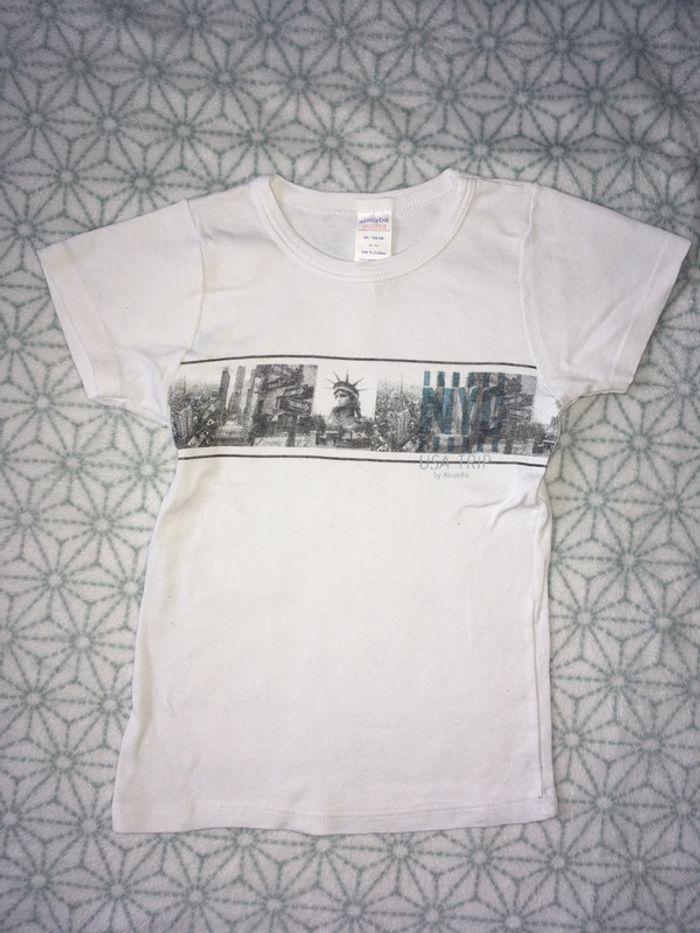 Tee-shirt blanc style tricot de peau avec motif New York D'autres modèles et marques disponibles pour garçon du prématuré au 8 ans et pour fille du naissance au 36 mois dont Timberland, Bout'chou, Zara, Jacadi, Tape à l'œil, Okaidi, DKNY, Monoprix.... #cath_moi8ansgarçon