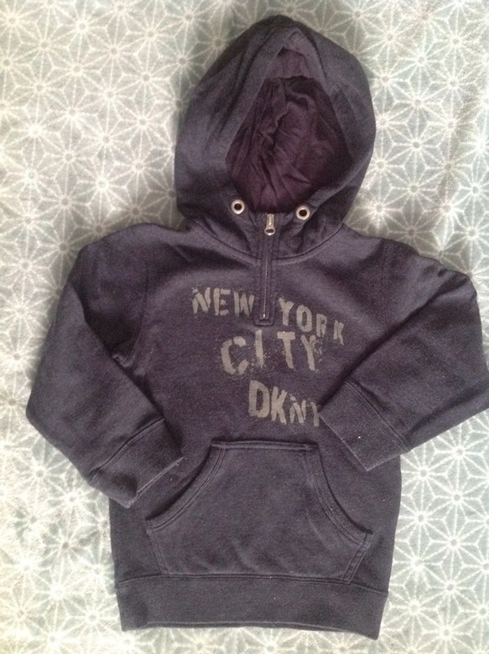 Pull à capuche bleu DKNY - 4 ans (taille un peu grand) Attention le pull bouloche un peu à cause des lavages d'où le prix bas #cath_moi4ansgarçon D'autres modèles et marques disponibles pour garçon du prématuré au 8 ans et pour fille du naissance au 36 mois dont Timberland, Bout'chou, Zara, Jacadi, Tape à l'œil, Okaidi, DKNY, Monoprix....