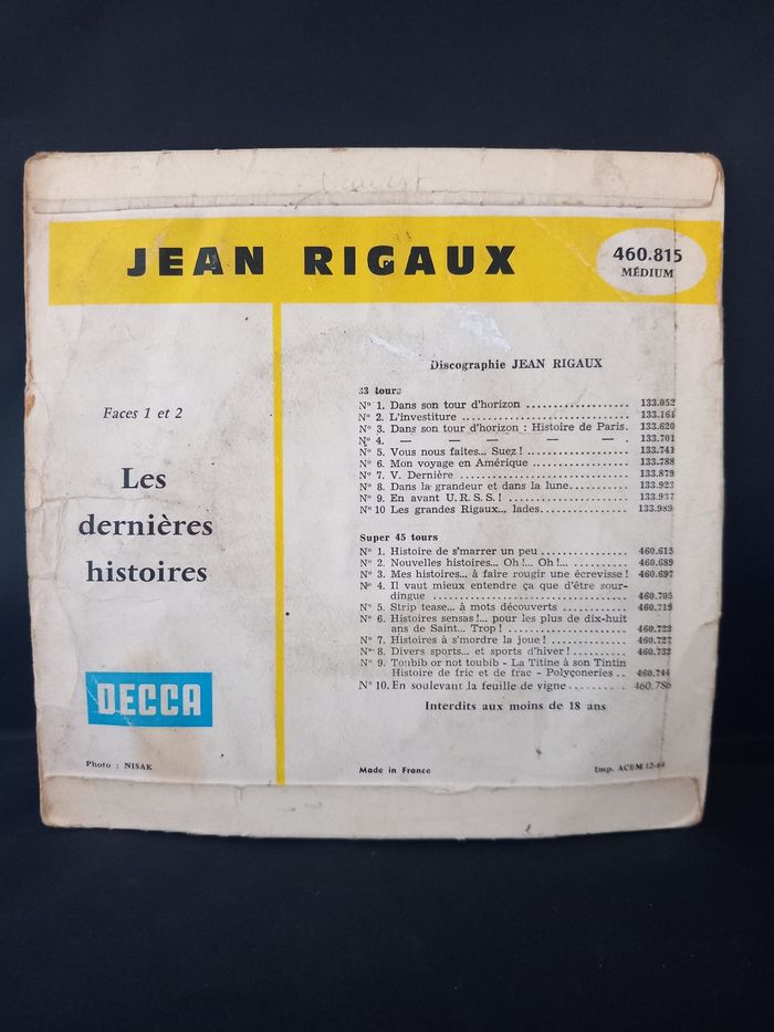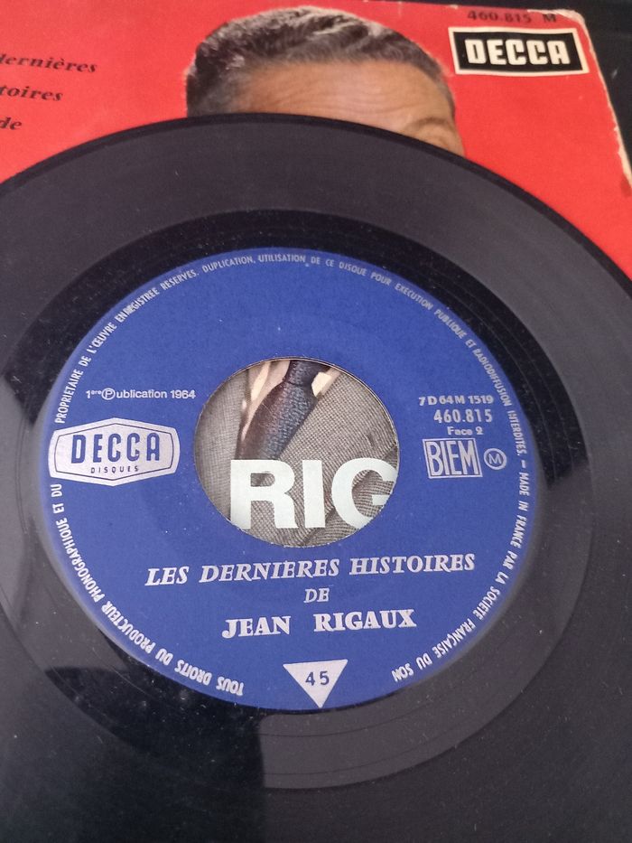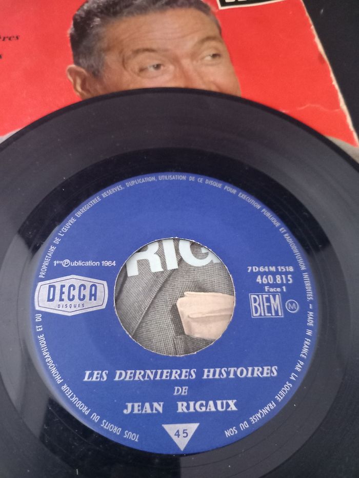 Disque vinyle 45 tours Artiste : Jean Rigaux Titres : les dernières histoires de Jean Rigaux Face A 10 titres Face B 10 titres En bon état