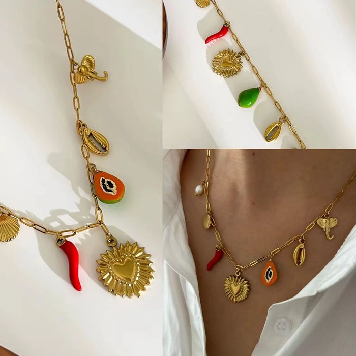 Collier “Amulettes Solaires” Acier inoxydable doré, perles et émaux - photo numéro 1
