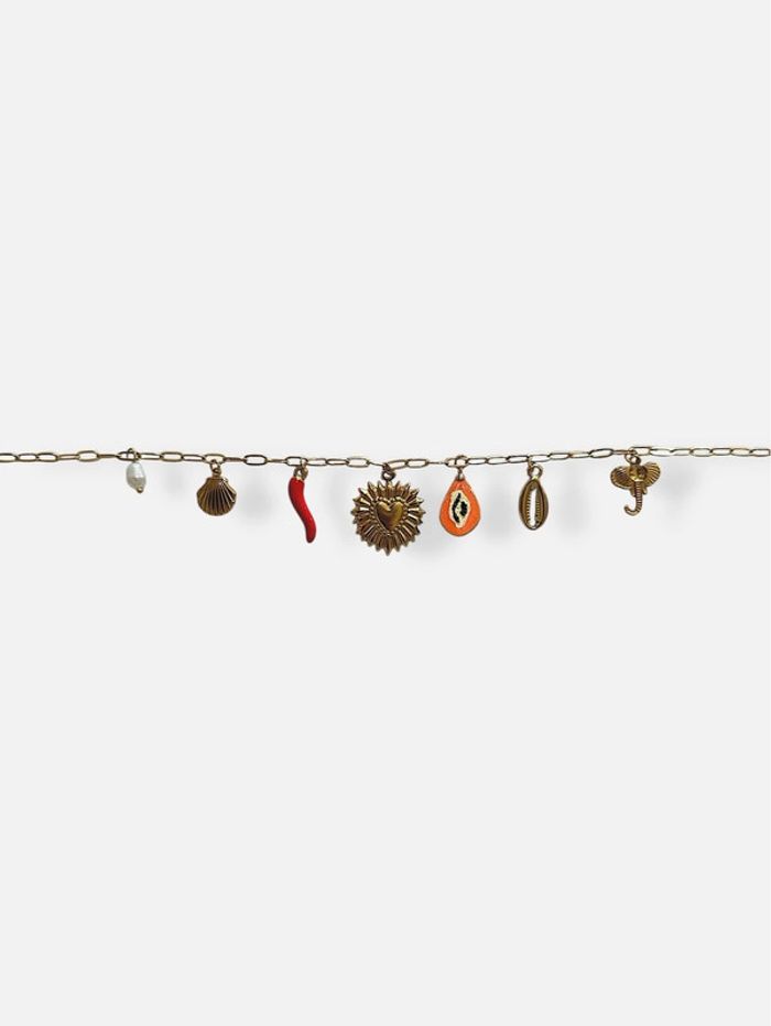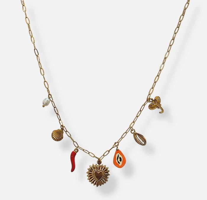 Le collier Amulettes Solaires est un bijou bohème chic orné de breloques symboliques : coquillage, soleil, corail et perles naturelles d’eau douce. Chaque pendentif raconte une histoire de protection, de chance et de connexion à la nature. • Matière : Acier inoxydable 316L doré à l’or fin 18K (PVD), hypoallergénique et résistant • Breloques : Perles naturelles d’eau douce, émail coloré, résine • Longueur : 41 cm + extension 5 cm • Poids : 11,6 g • Pendentif principal : env. 1,9 cm • Résistance : Ne ternit pas, résiste à l’eau, facile d’entretien ✨ Un collier idéal pour celles qui aiment porter des symboles de chance et d’énergie positive, parfait pour une allure bohème et raffinée.