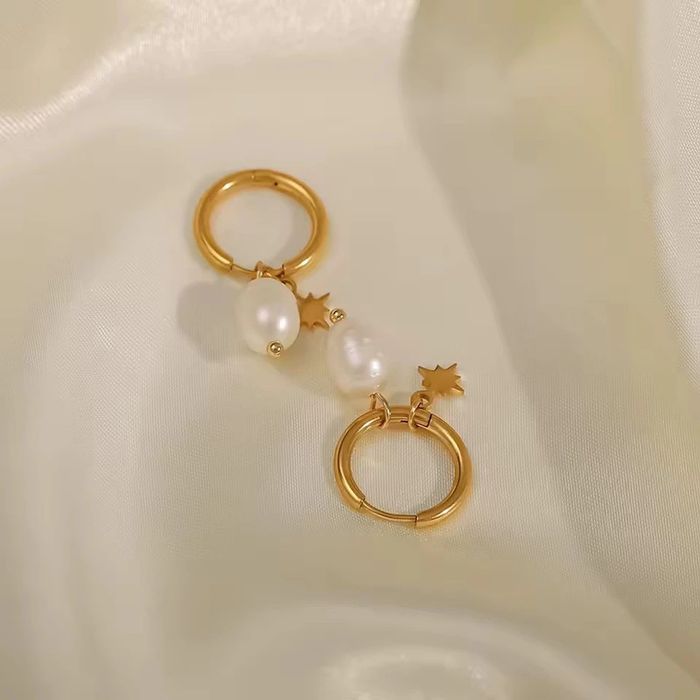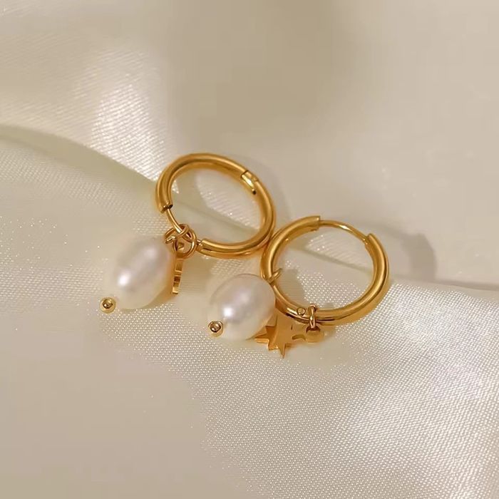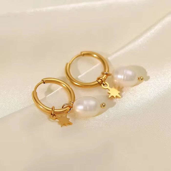 Élégantes créoles dorées en acier inoxydable, ornées d’une véritable perle d’eau douce naturelle et d’un petit pendentif étoile doré. Taille discrète (16 mm de diamètre) et poids léger (3,96 g), parfaites pour un port quotidien. Bijou hypoallergénique, résistant à l’eau et tendance, idéal pour un style chic et raffiné. Modèle neuf vendu avec son pochon de protection.