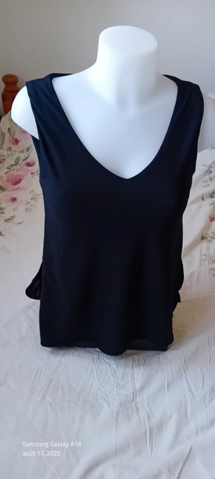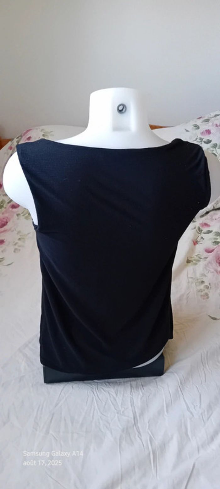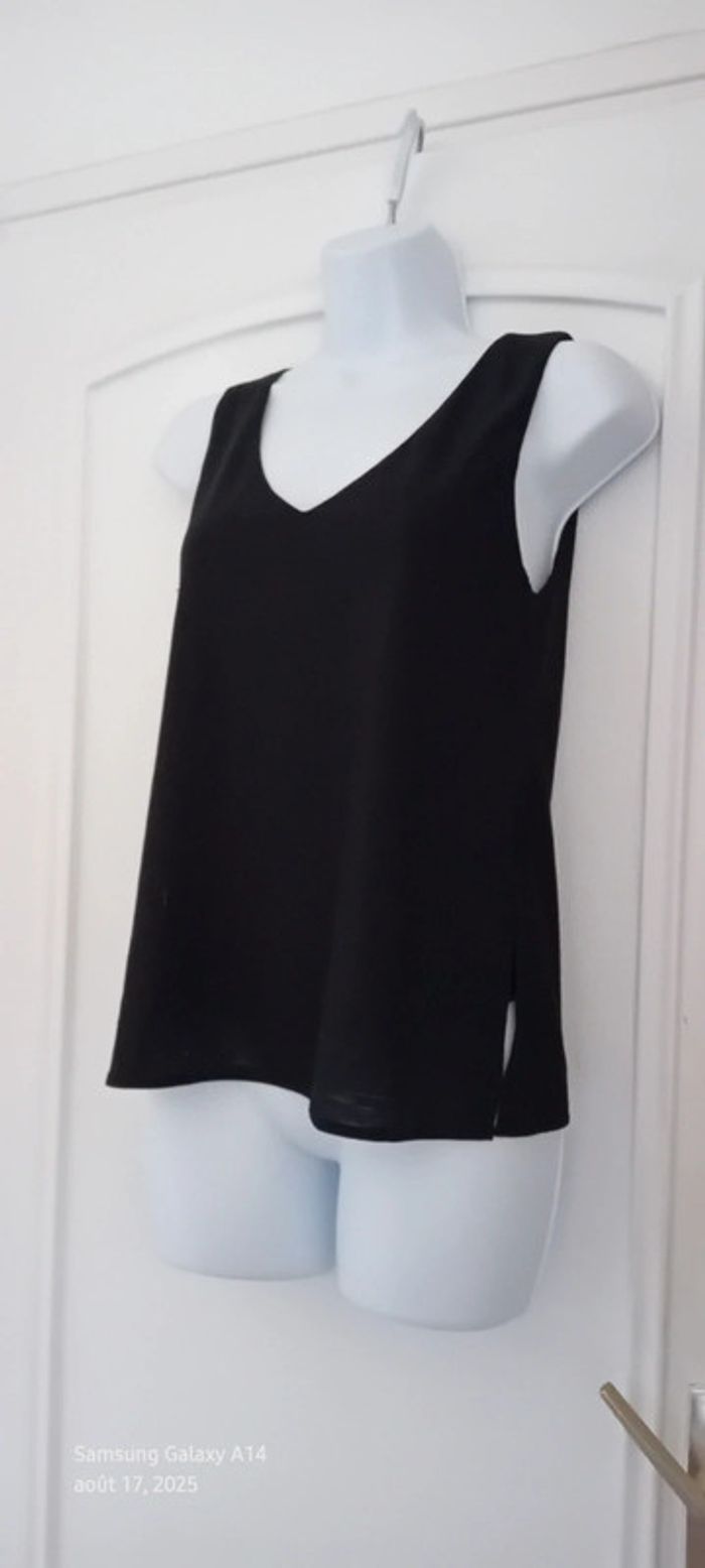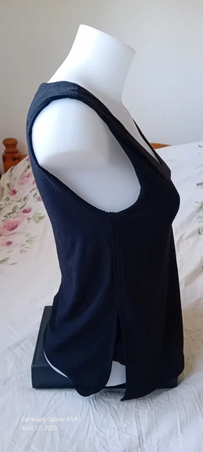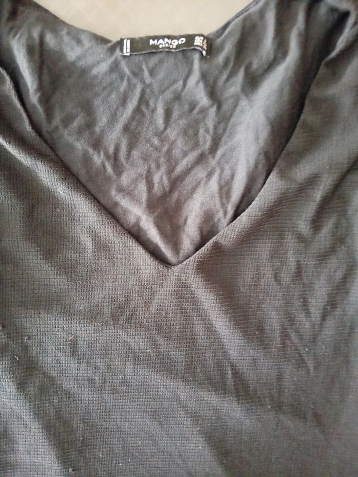 Haut noir sans manches col en V aspect gaufré doublé femme S mango - photo numéro 3