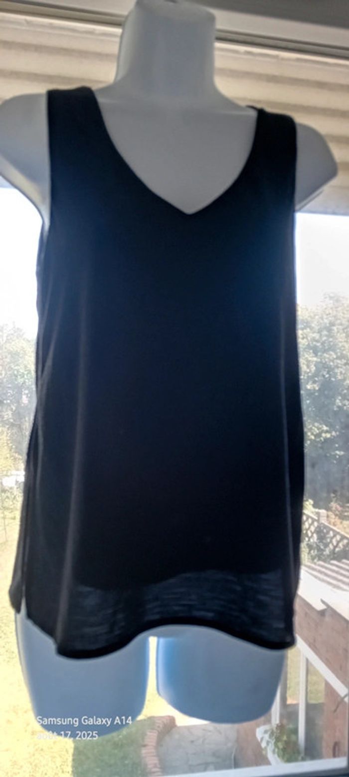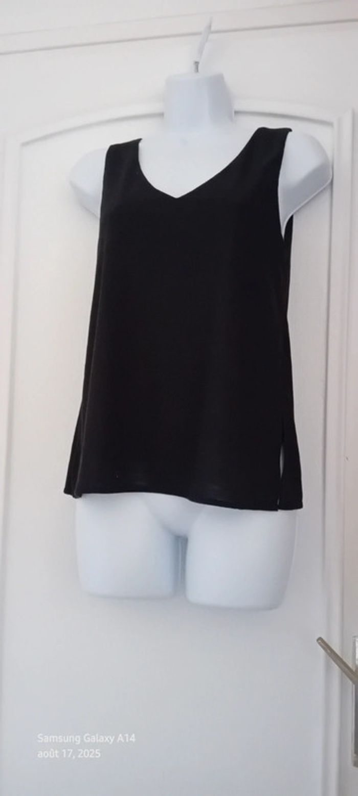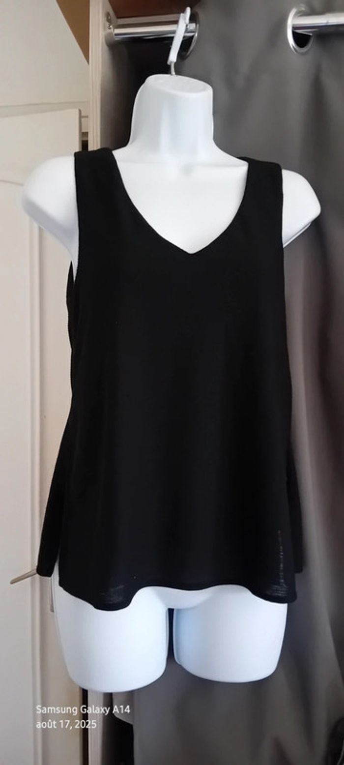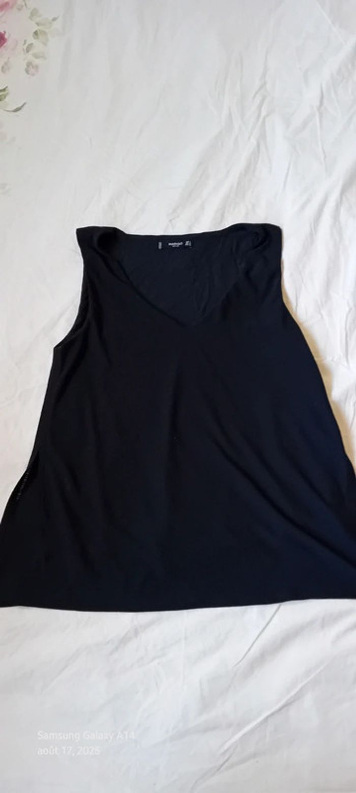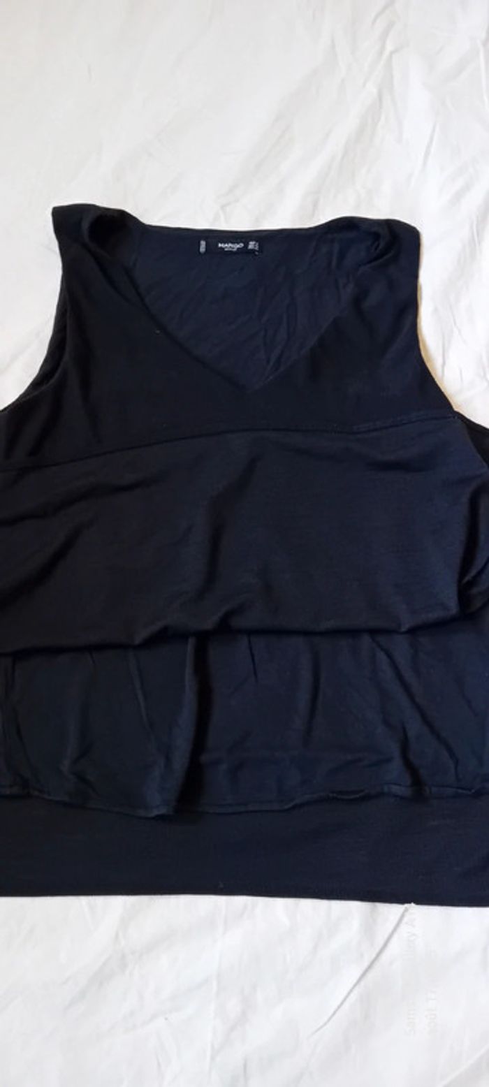Haut noir sans manches col en V aspect gaufré doublé femme S mango - photo numéro 2