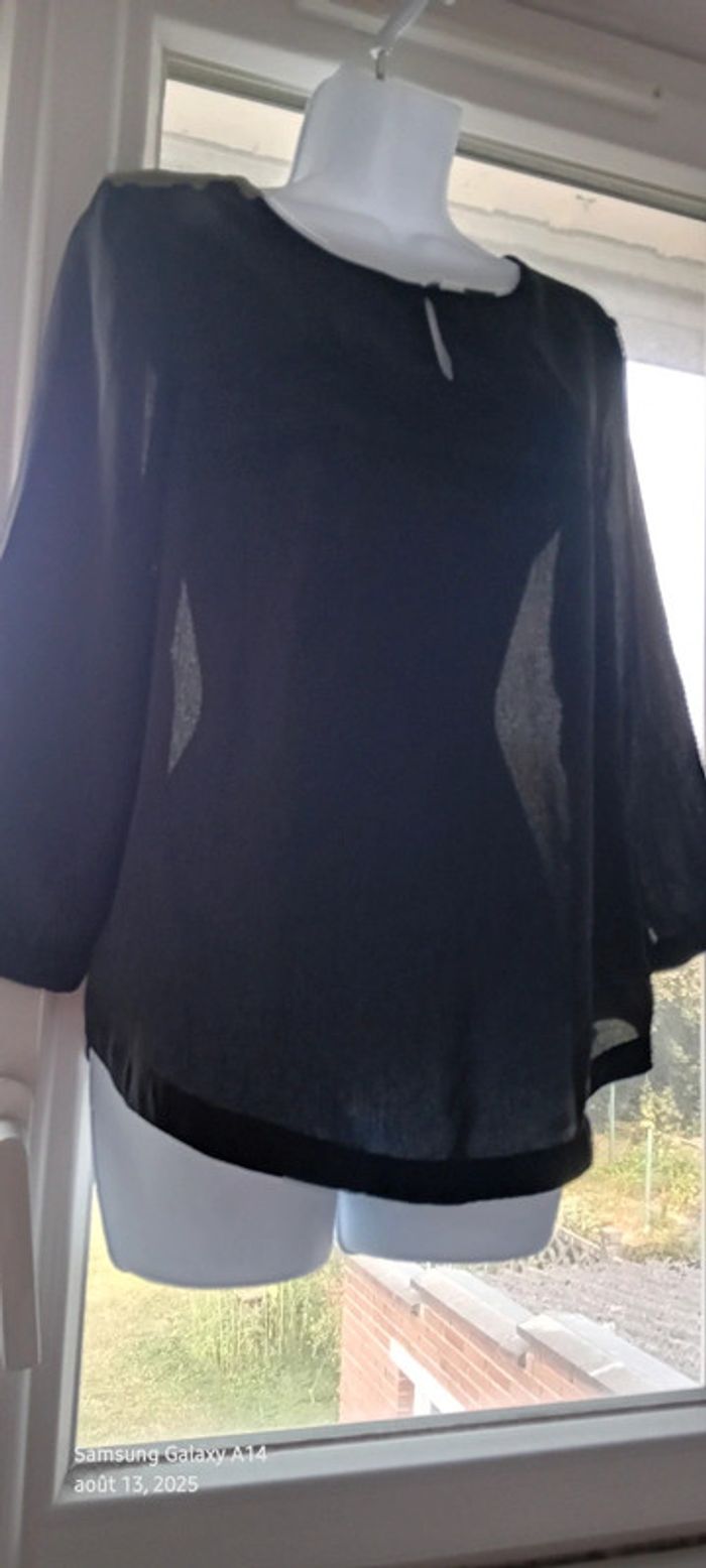 Blouse en polyester aspect voile semi transparente manches longues bouton goutte d eau et motif etnique brodé devant bas arrondi longueur 62 cm largeur aisselles à aisselles 49 cm largeur épaules 37 cm longueur manches 46 cm très peu portée en très bon état ⚠️ il manque les petits boutons aux manches #midole ##midolefemme #midolefemme40 #femme40 #hautfemme40 #blousefemme40 #blousenoire #blousemancheslongues #cestbeaulavie40 #cestbeaulavie