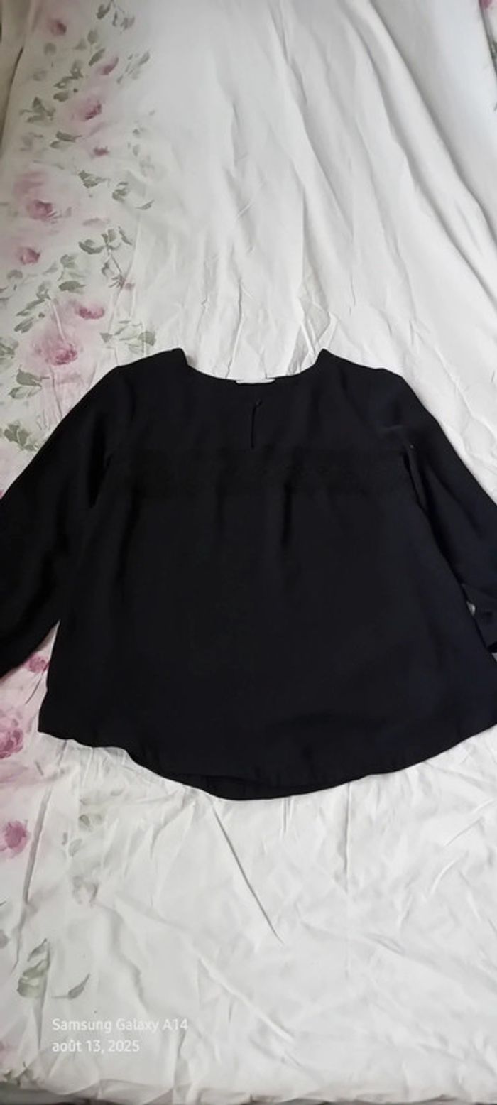 Blouse en voile noire manches longues motif ethnique brodé femme L c est beau la vie - photo numéro 1