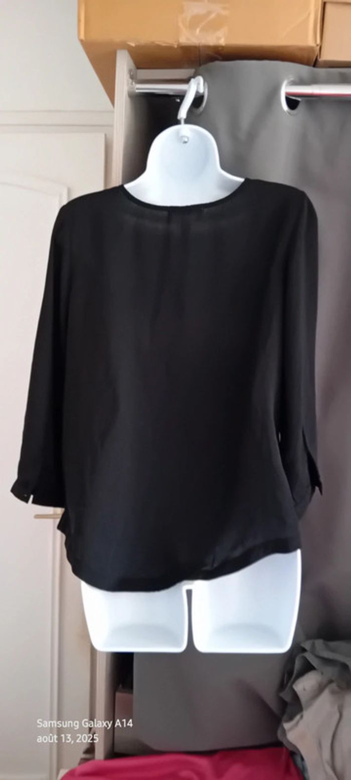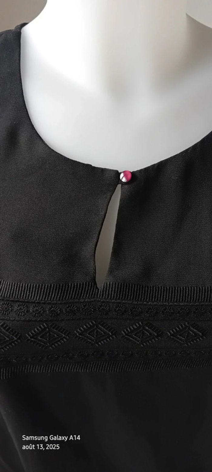 Blouse en voile noire manches longues motif ethnique brodé femme L c est beau la vie - photo numéro 19