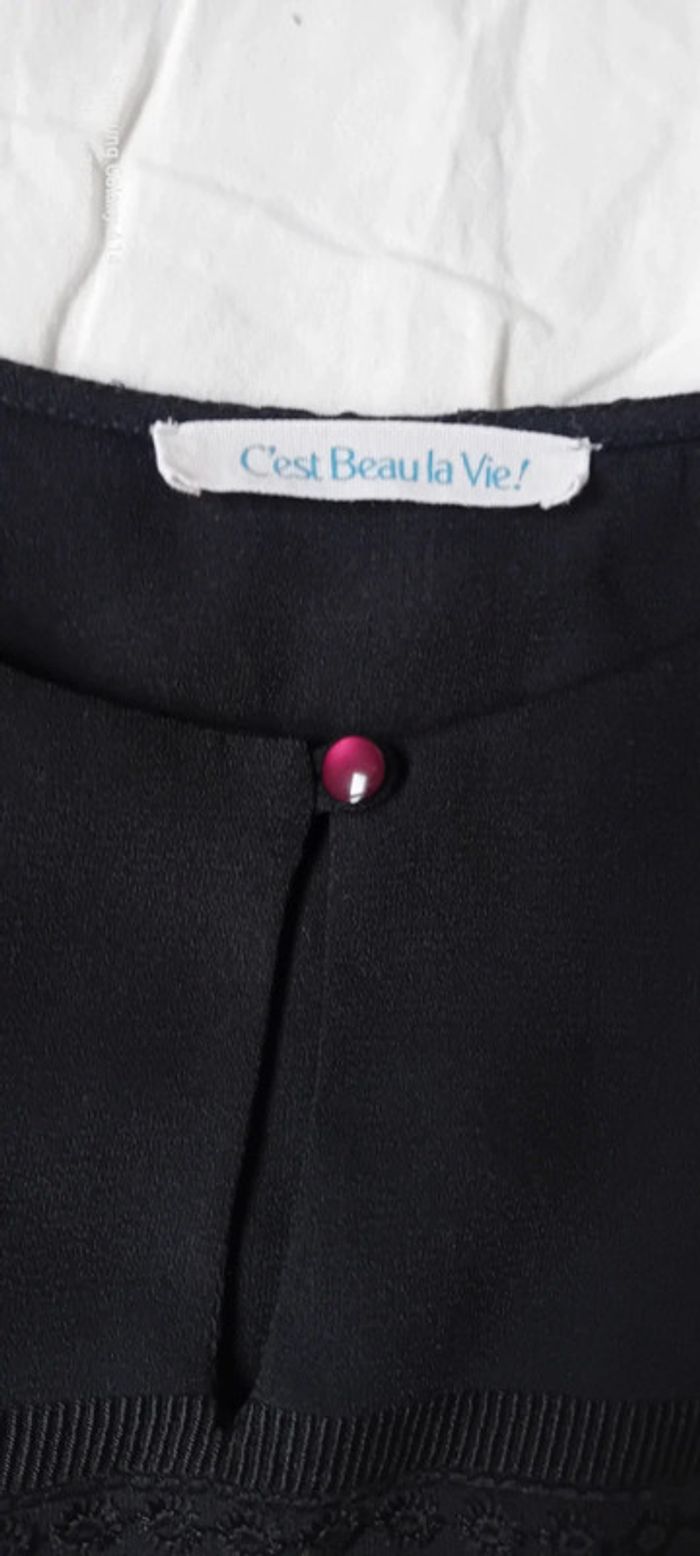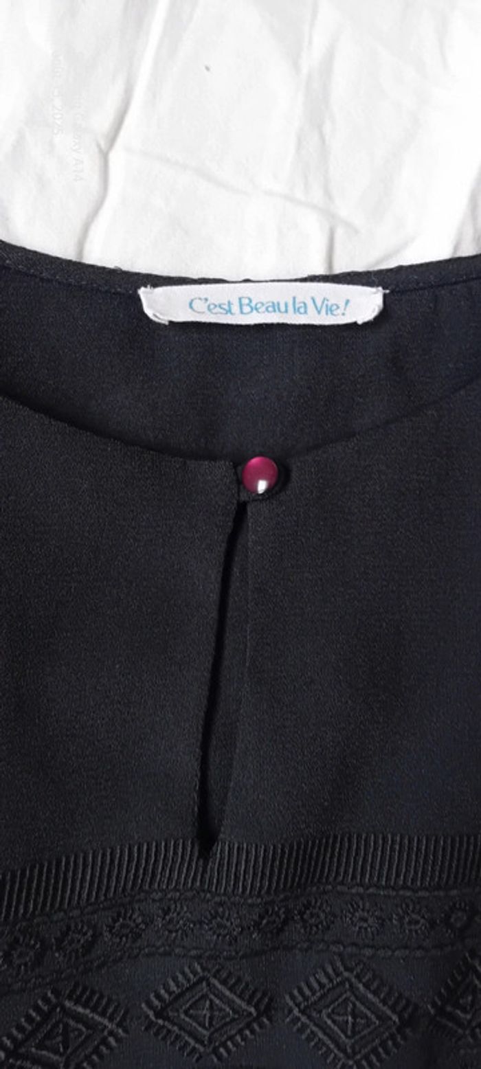 Blouse en voile noire manches longues motif ethnique brodé femme L c est beau la vie - photo numéro 3