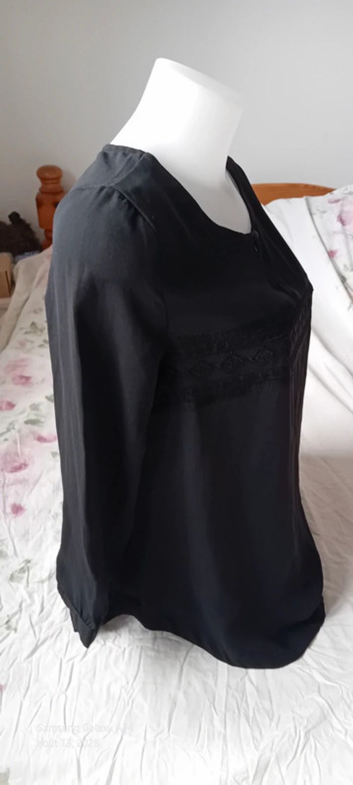 Blouse en voile noire manches longues motif ethnique brodé femme L c est beau la vie - photo numéro 2