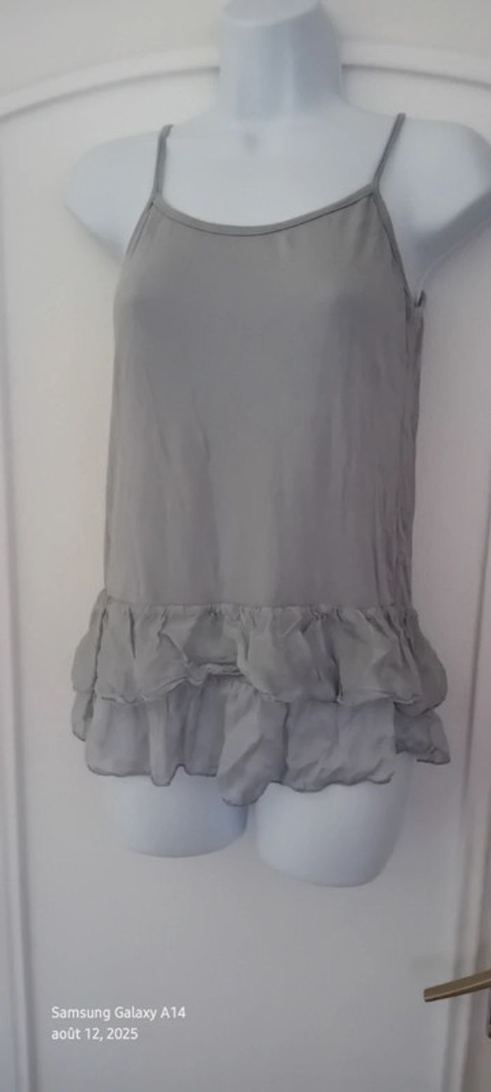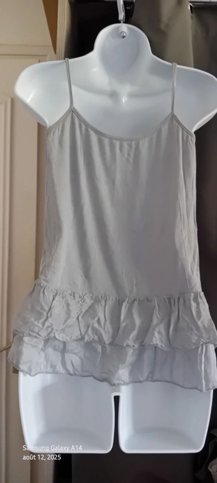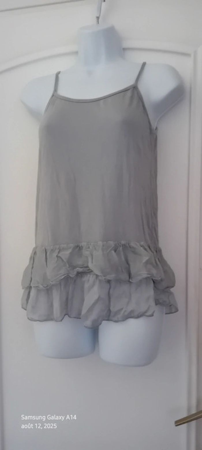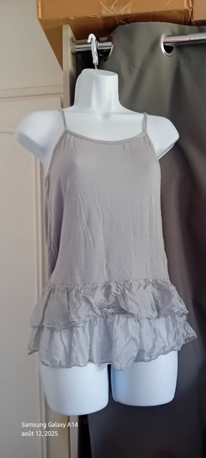 Haut fines bretelles bas volanté avec soie gris argenté femme S/M made in Italy - photo numéro 4