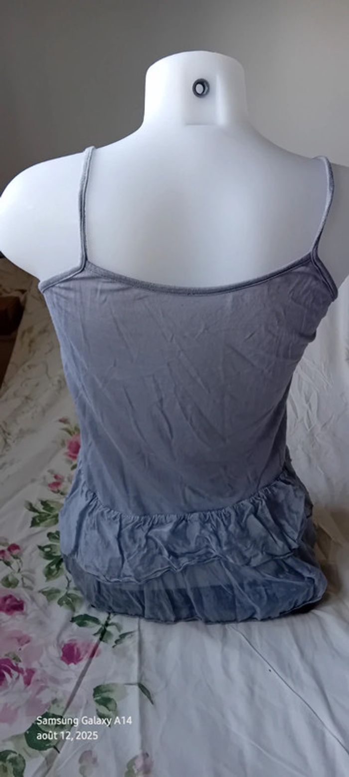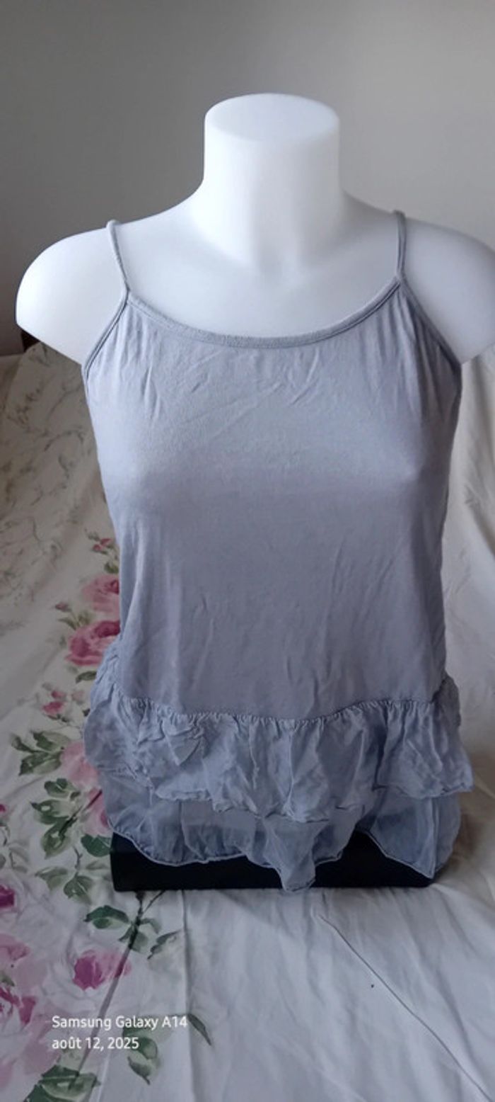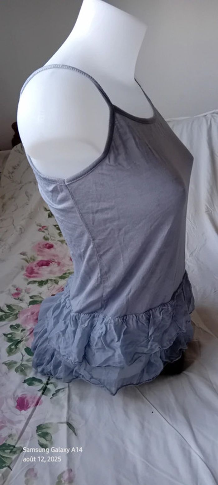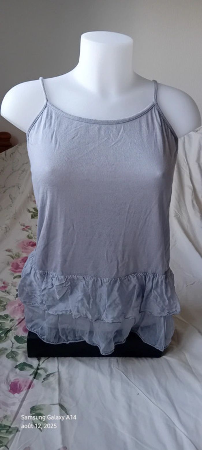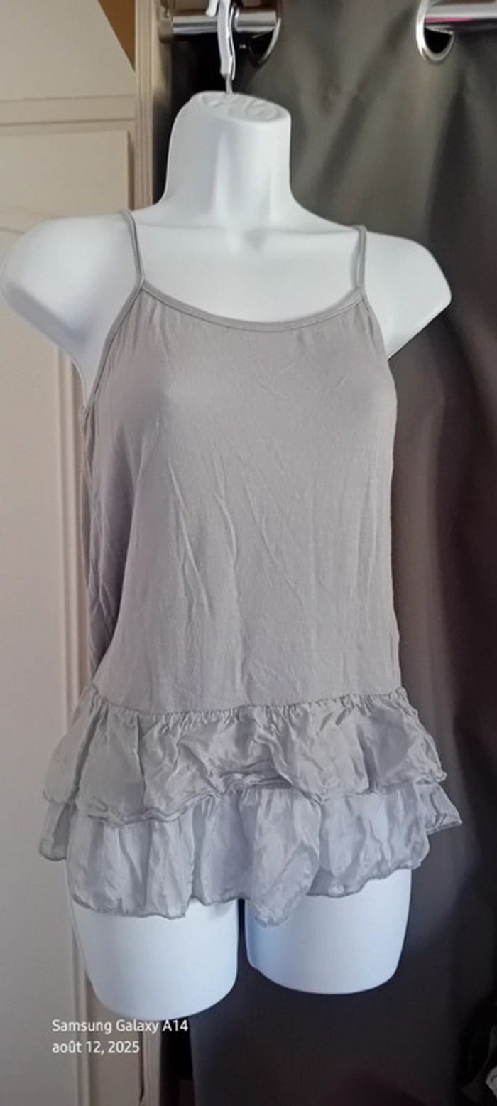Haut fines bretelles bas volanté avec soie gris argenté femme S/M made in Italy - photo numéro 4