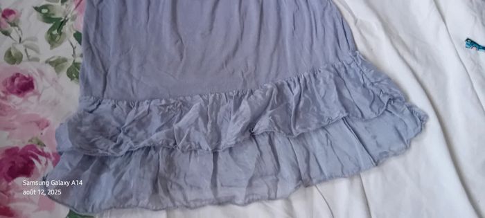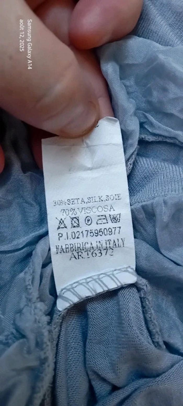 Haut fines bretelles bas volanté avec soie gris argenté femme S/M made in Italy - photo numéro 14