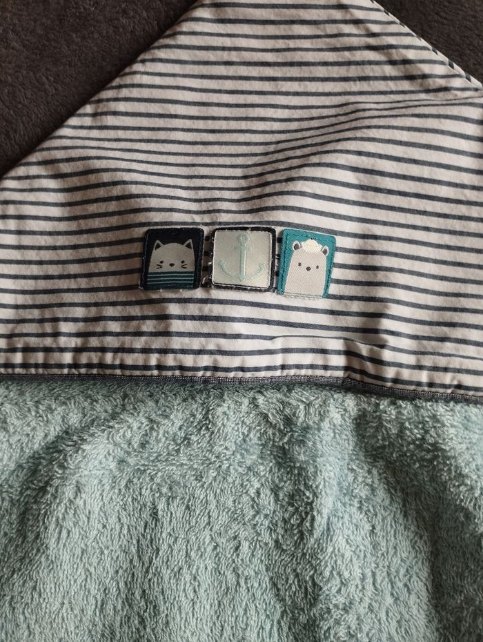 Grande cape de bain pour bébé fille ou garçon, de marque Obaibi Motifs marins sur la capuche 📏 88 x 98 cm environ 📍En très bon état