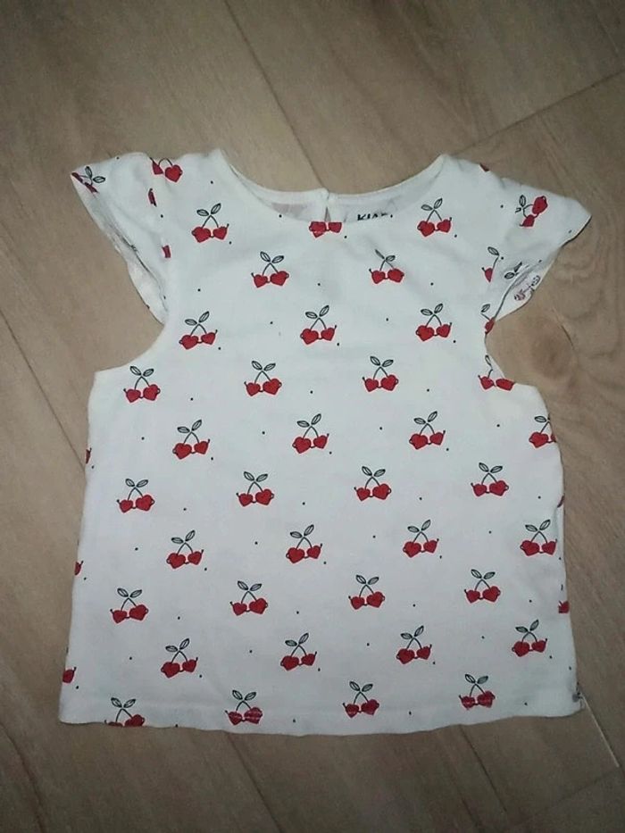 tee-shirt fille, motif cerises, taille 18 mois, marque kiabi, peu porté #eloetgui_bebe_18mois #tshirtfillemotif #tshirtfille18mois #teeshirtfille18mois #tshirtmotifcerise18mois