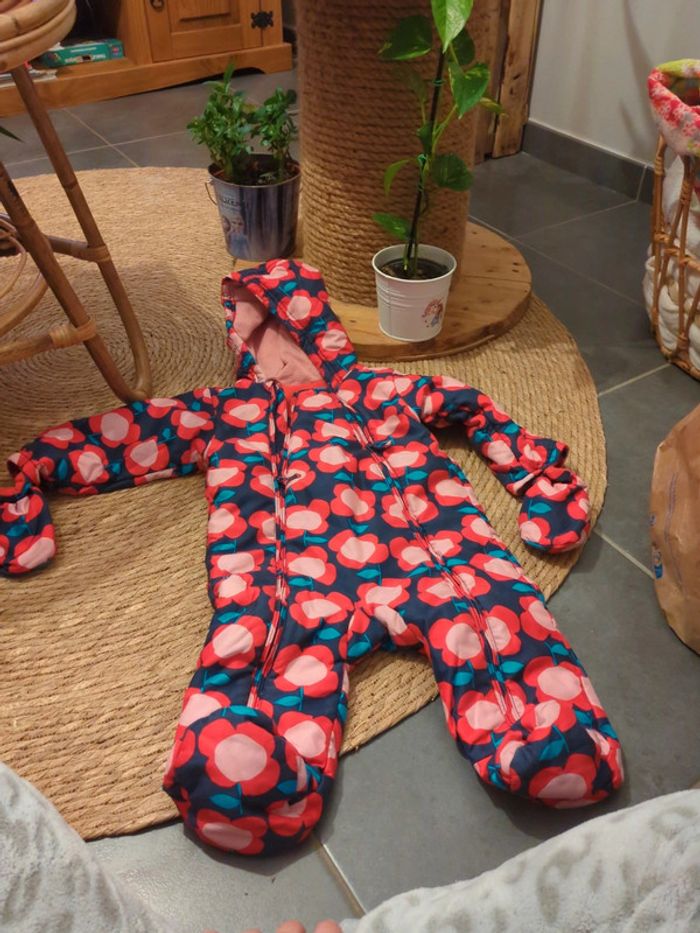 9/12 mois En très bon état, comme neuf. Marque M&S Porté uniquement 1 semaine au ski l'hiver dernier. Combinaison avec ses moufles qui peuvent s'enlever. Très pratique avec ses 2 ouvertures sur le devant 🙂 Valeur d'achat 40€.