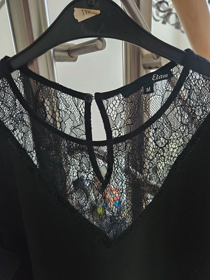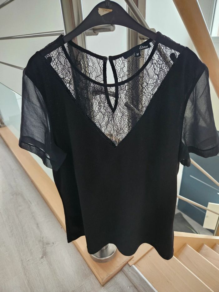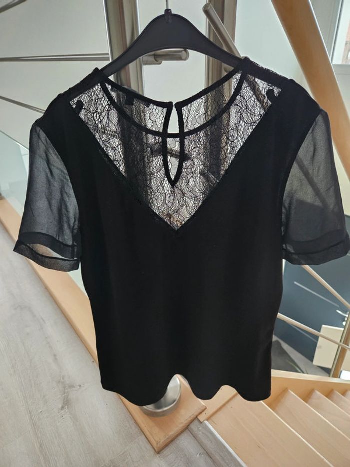 Tee shirt col en dentelle et manches en voile