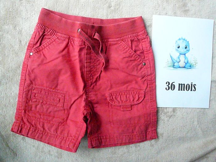 Ensemble 3 pièces taille 3 ans composé de : - Un short rouge – ceinture élastique, - Un tee-shirt blanc à rayures bleu marine - Une chemise blanche manches courtes. Très bon état. N’hésitez pas à regarder mes autres annonces pour réduire les frais de port.