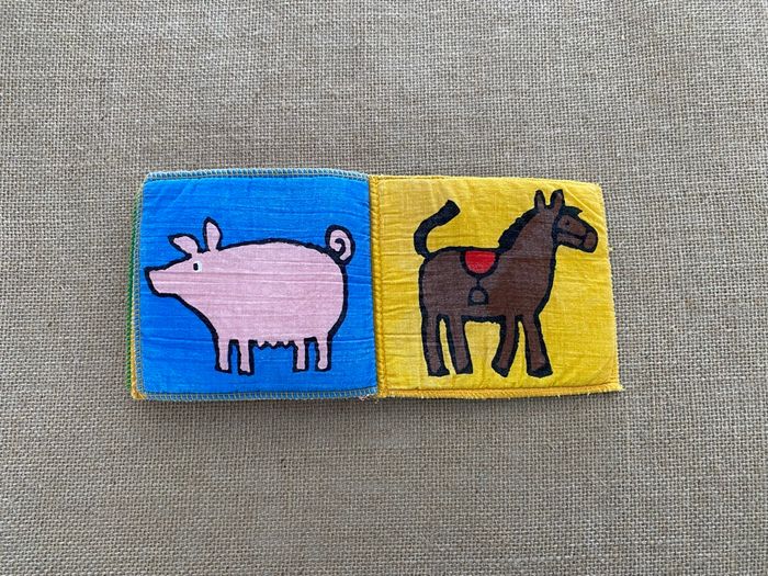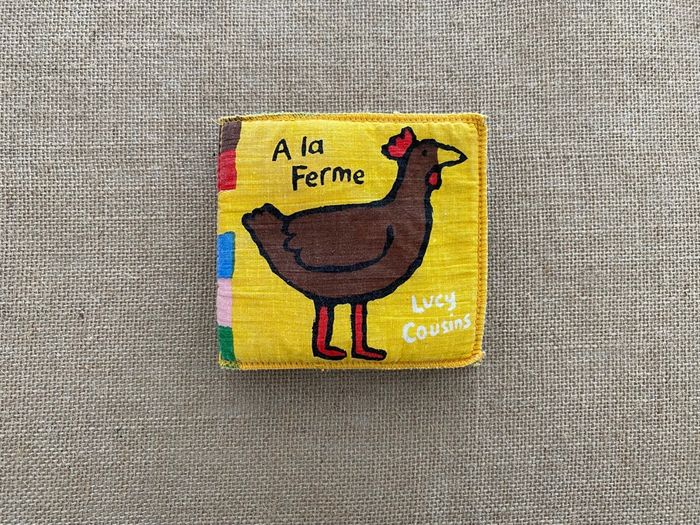 Offrez à bébé son premier livre d’éveil avec le livre tissu d’occasion “À la Ferme” de Lucy Cousins.