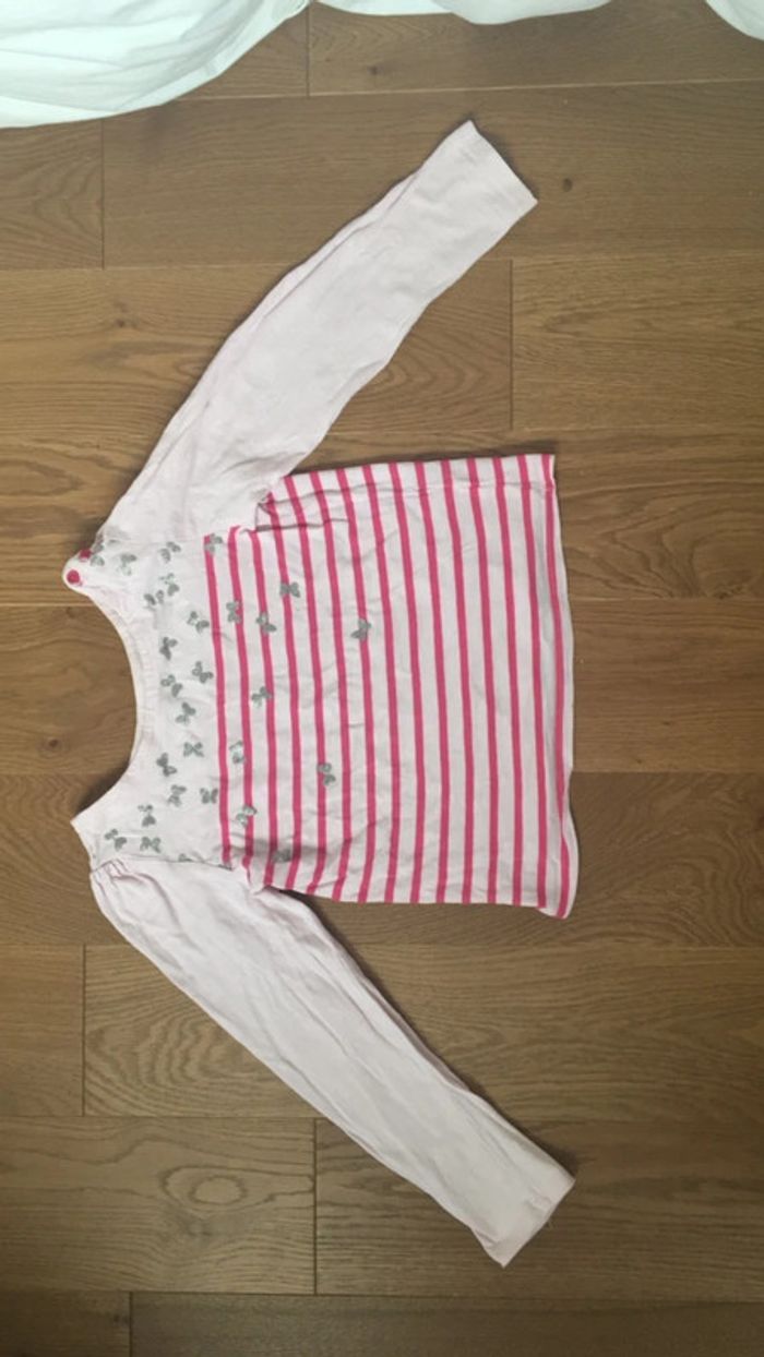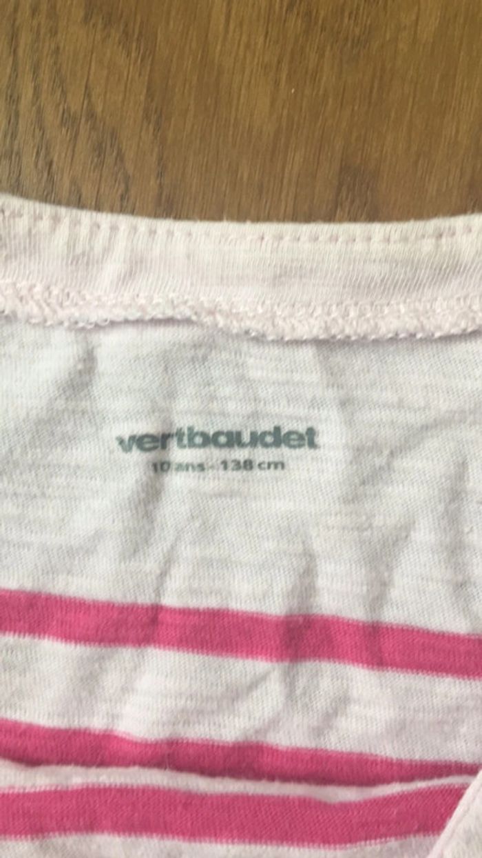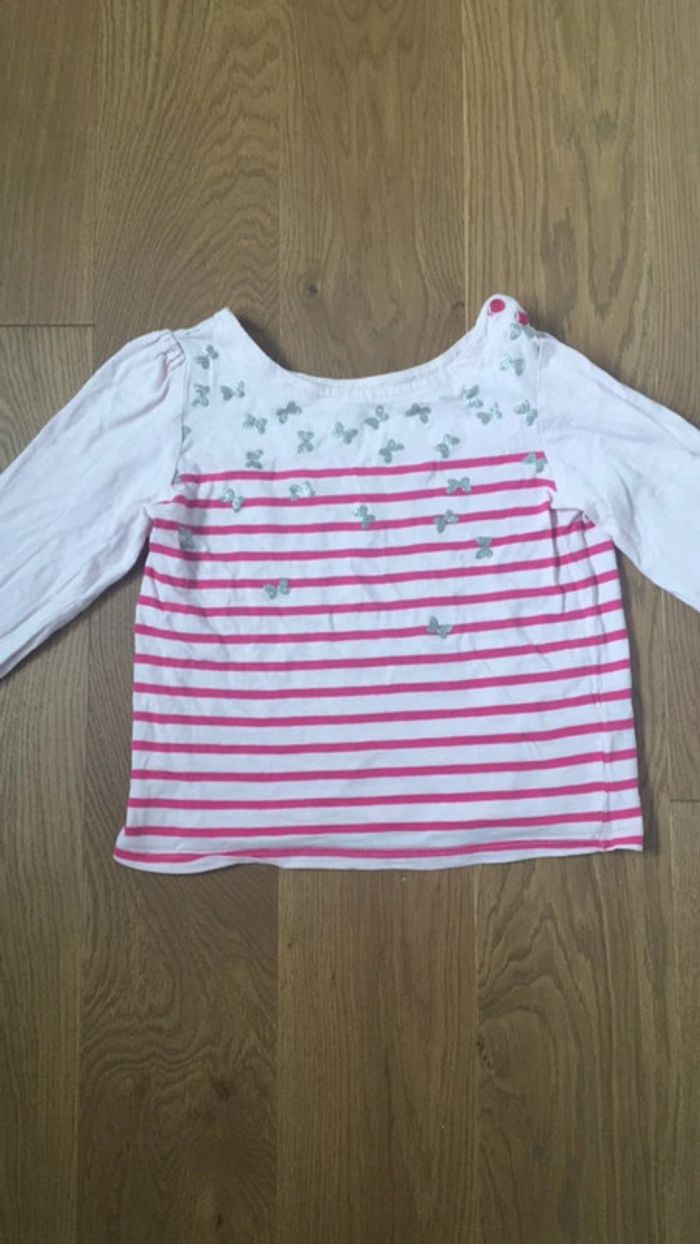 Tee-shirt manches longues Rose style marinière Petits papillons brillants argentés Taille 10 ans Vertbaudet