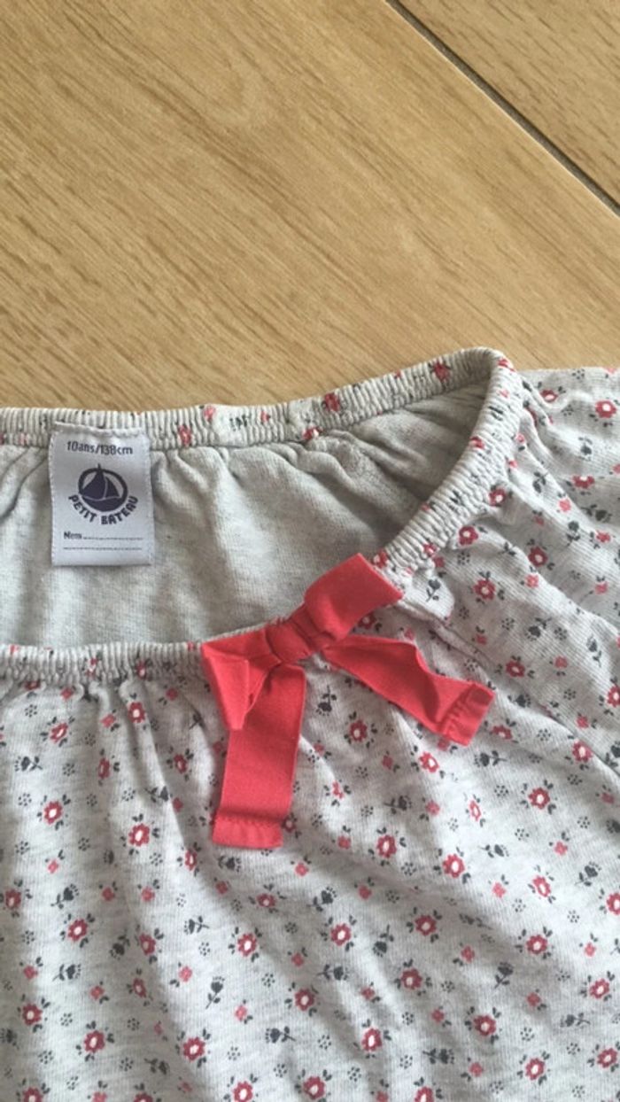 T-shirt manches longues Petit Bateau Petit noeud rouge au col Gris avec Peters fleurs rouges