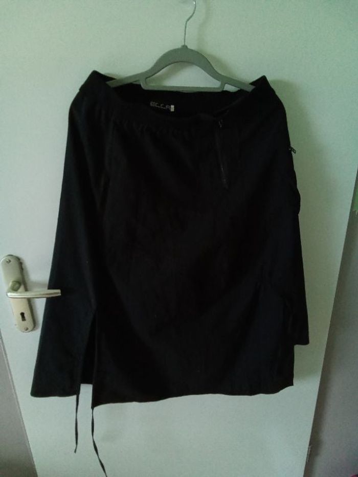 Jupe noir 100% coton. Atypique car 2 liens coulissants qui permettent de modifier la jupe si on le désire