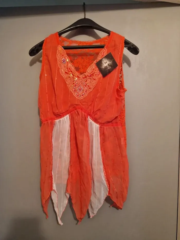 Jolie débardeur orange avec de la dentelle dans le dos Neuf avec étiquette T.S